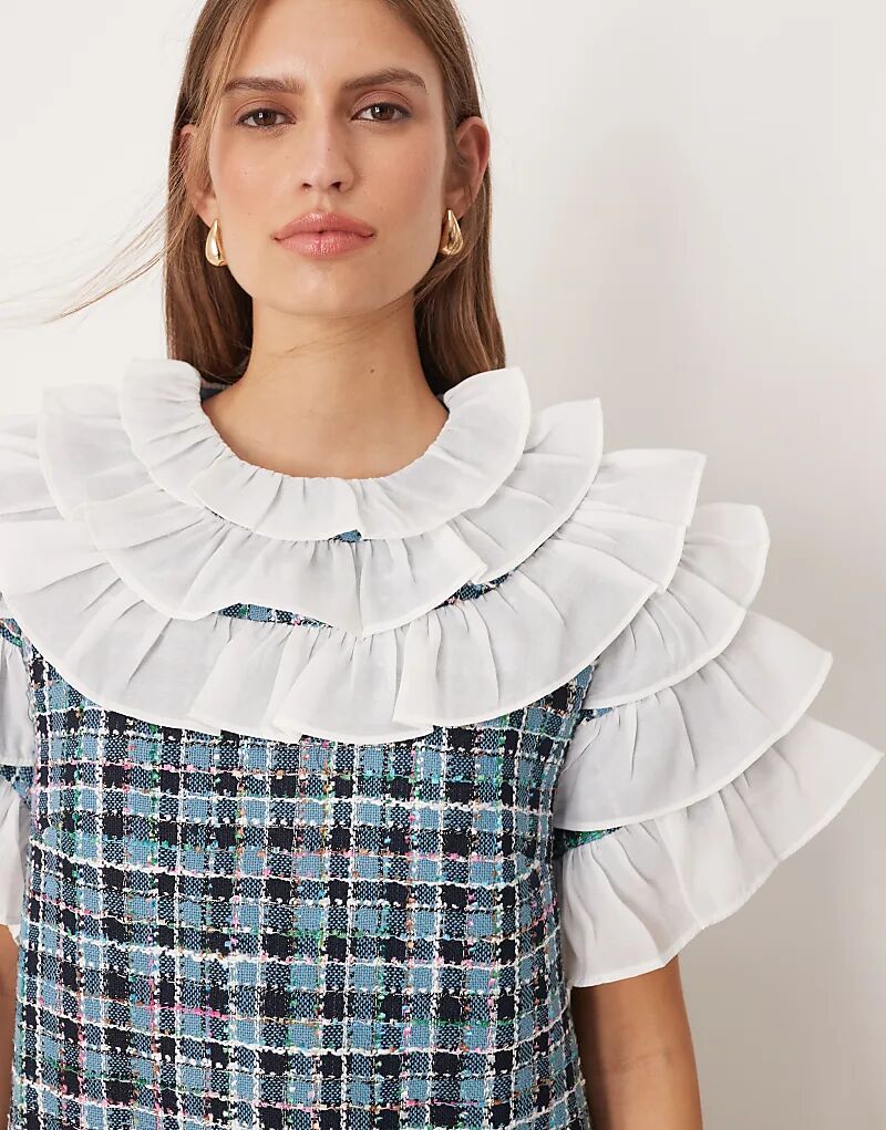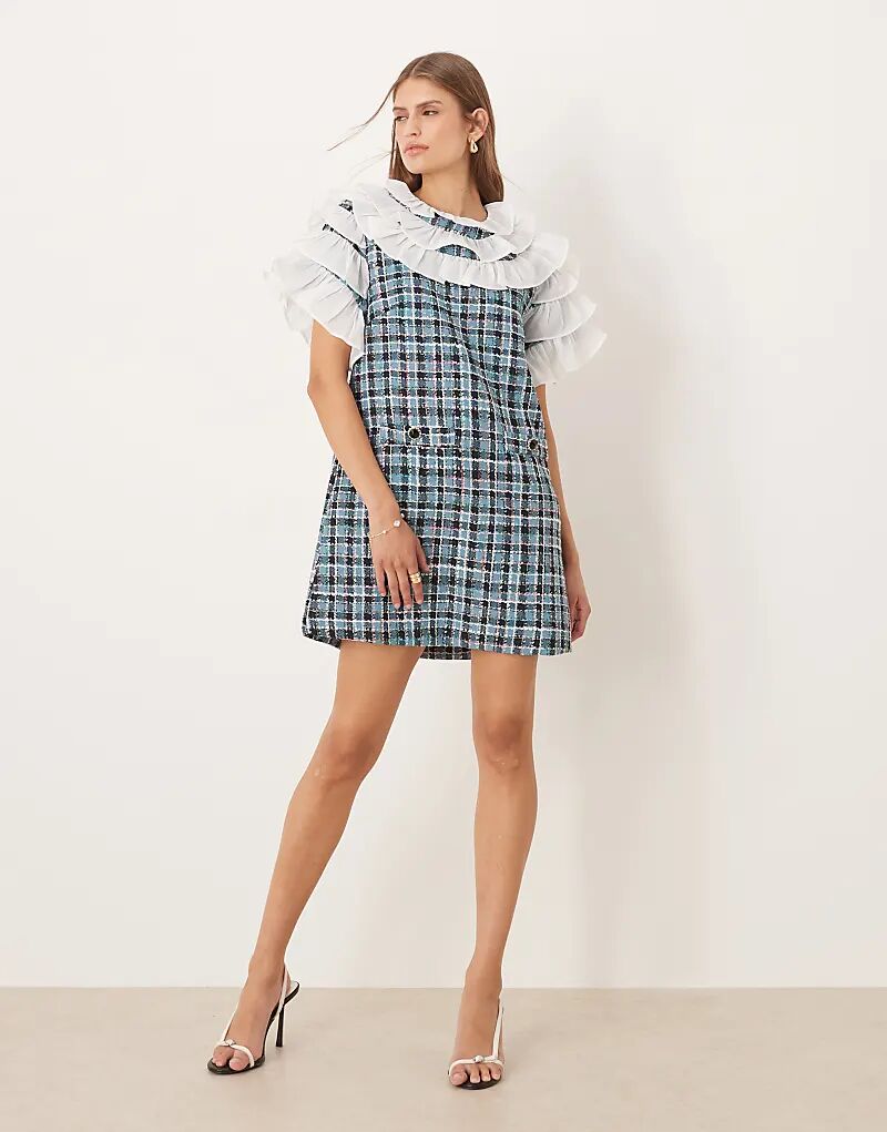 Мини-платье из твида в клетку синего цвета от Sister Jane