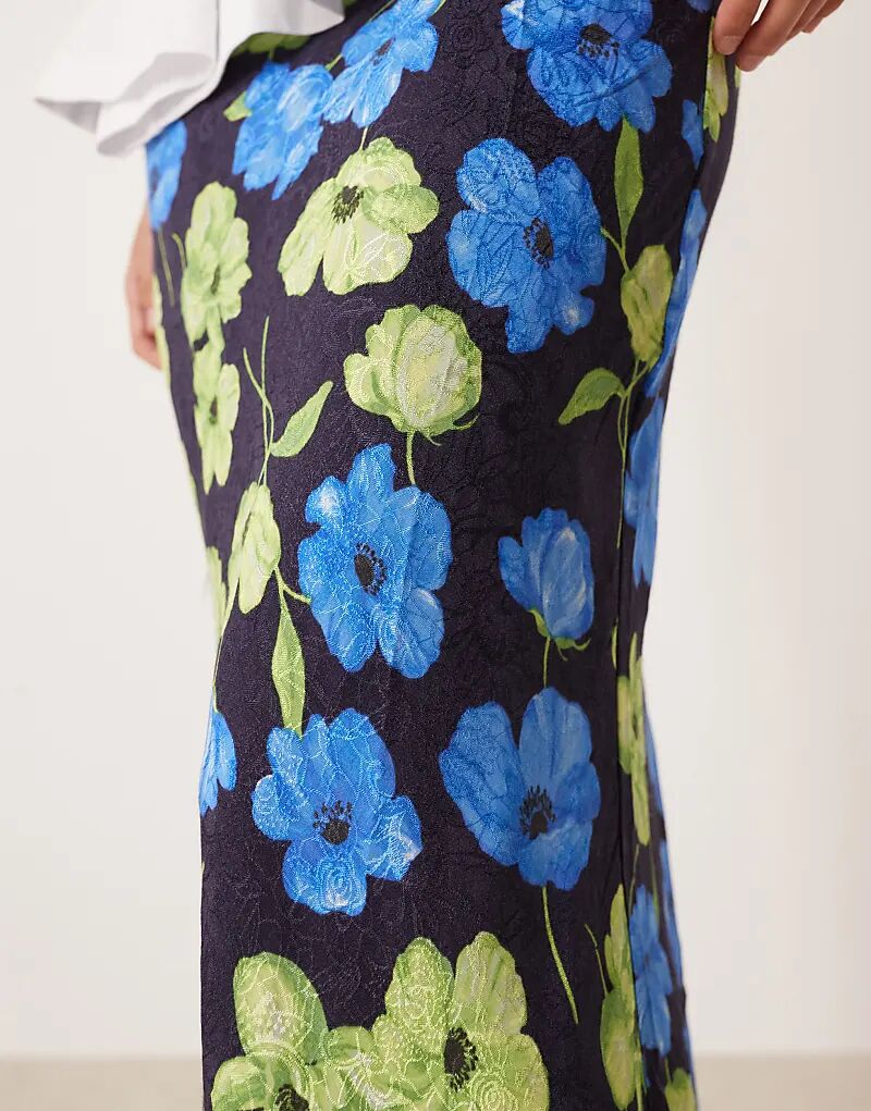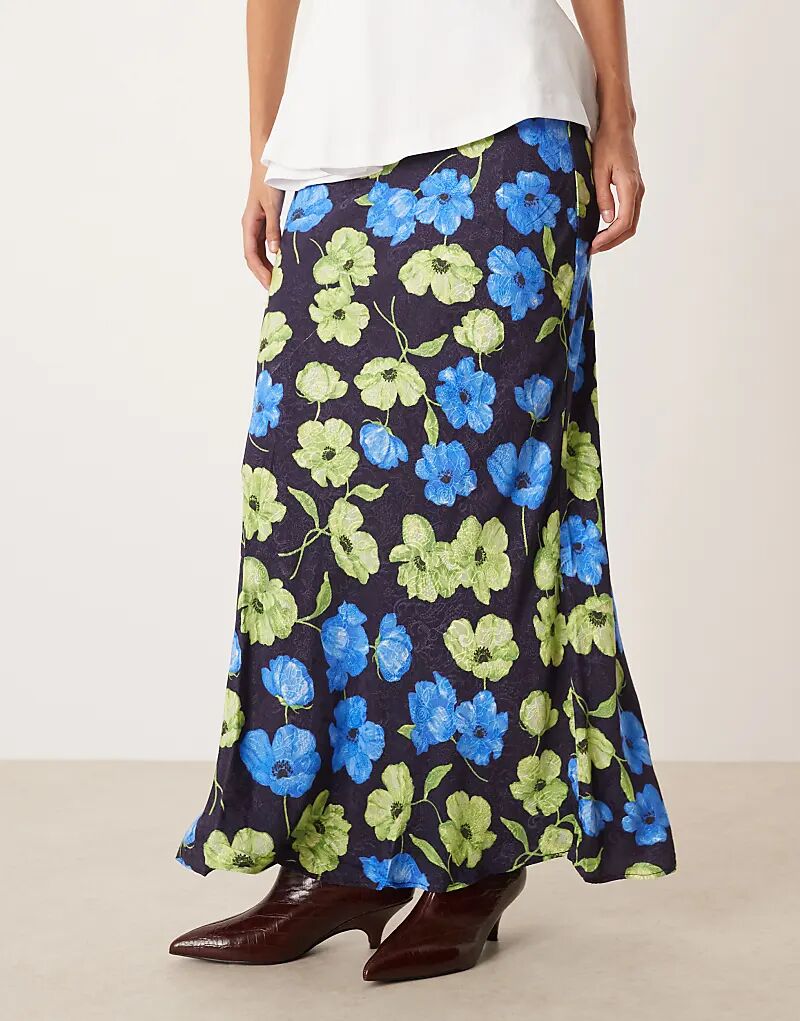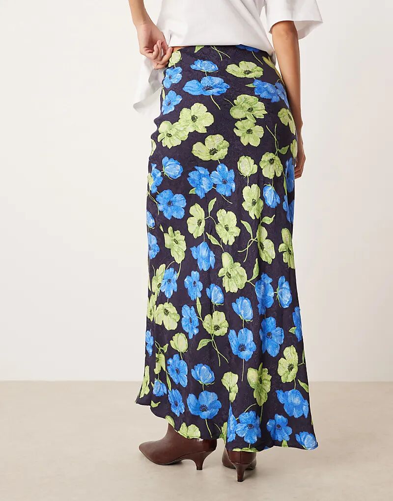 Юбка мидакси Mango с синим и зеленым цветочным принтом