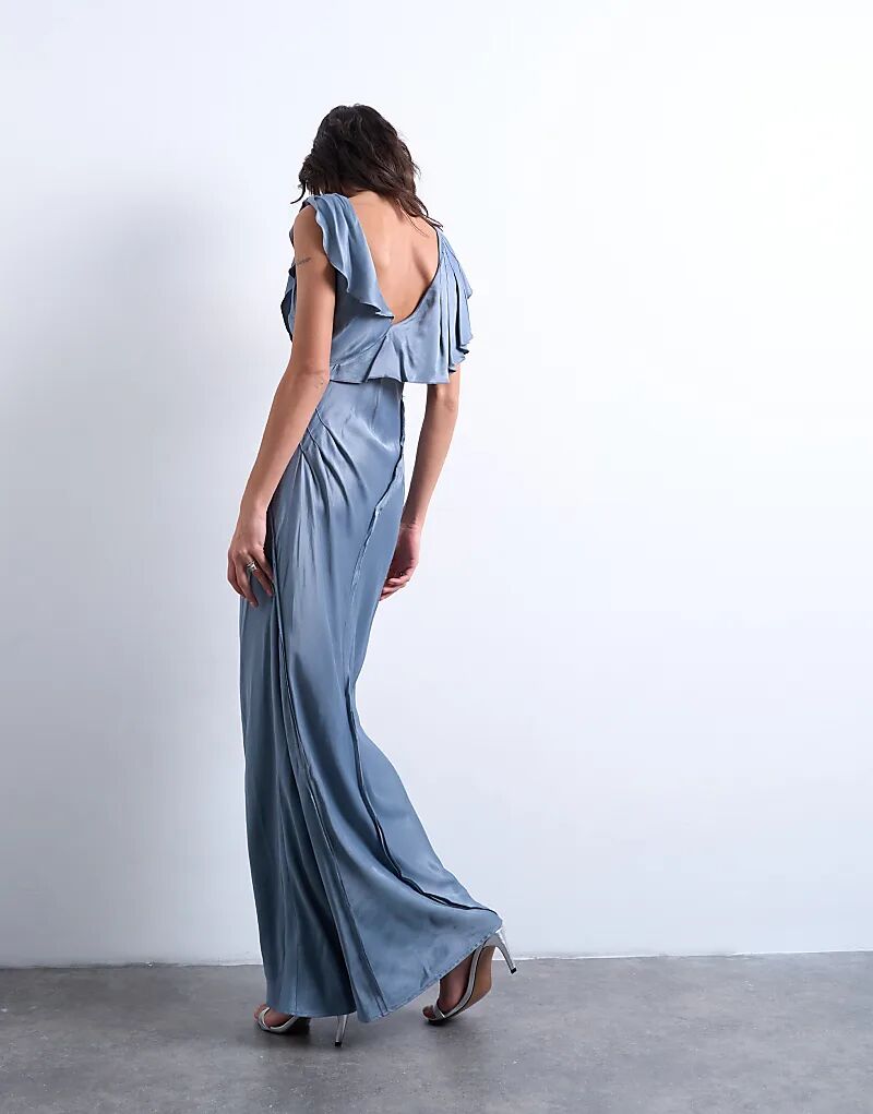 Платье макси с оборками от Topshop в цвете «Военно-синий»
