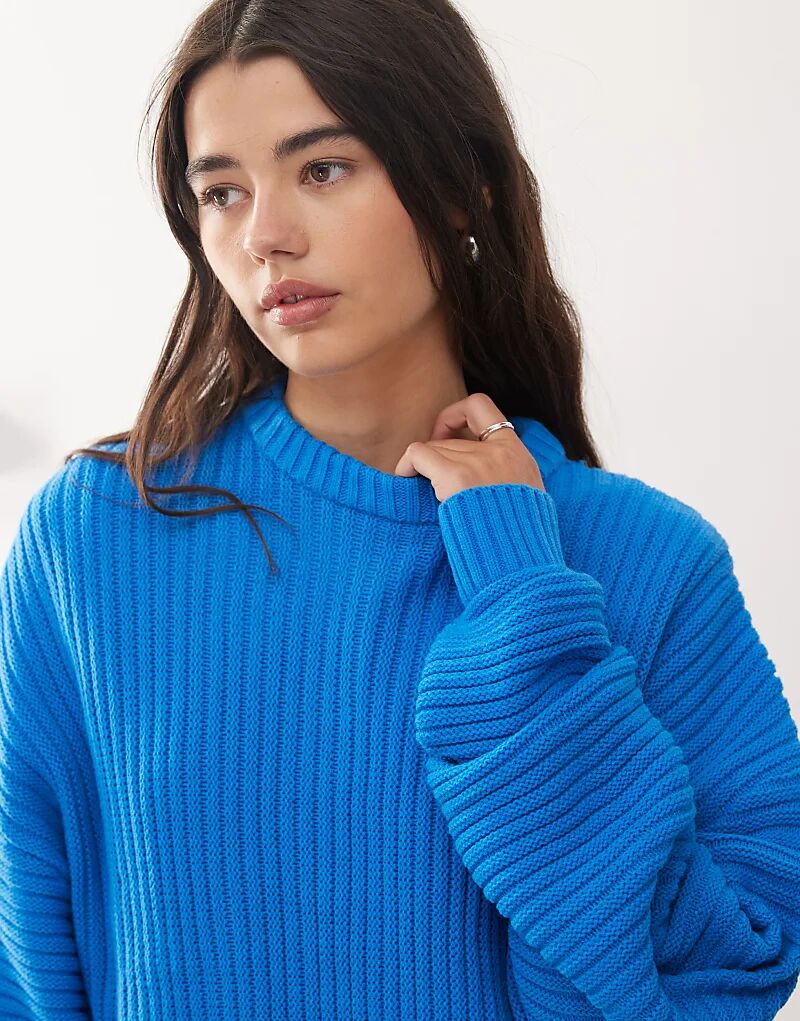 COLLUSION UNISEX джемпер в рубчик в стиле рыбалки синего цвета