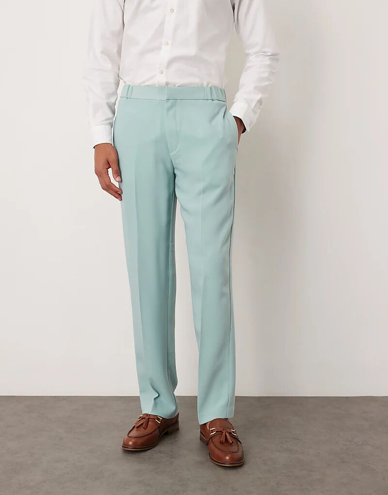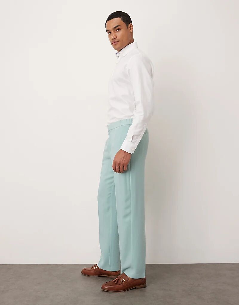 Прямые брюки ASOS DESIGN из льняного материала синего твила