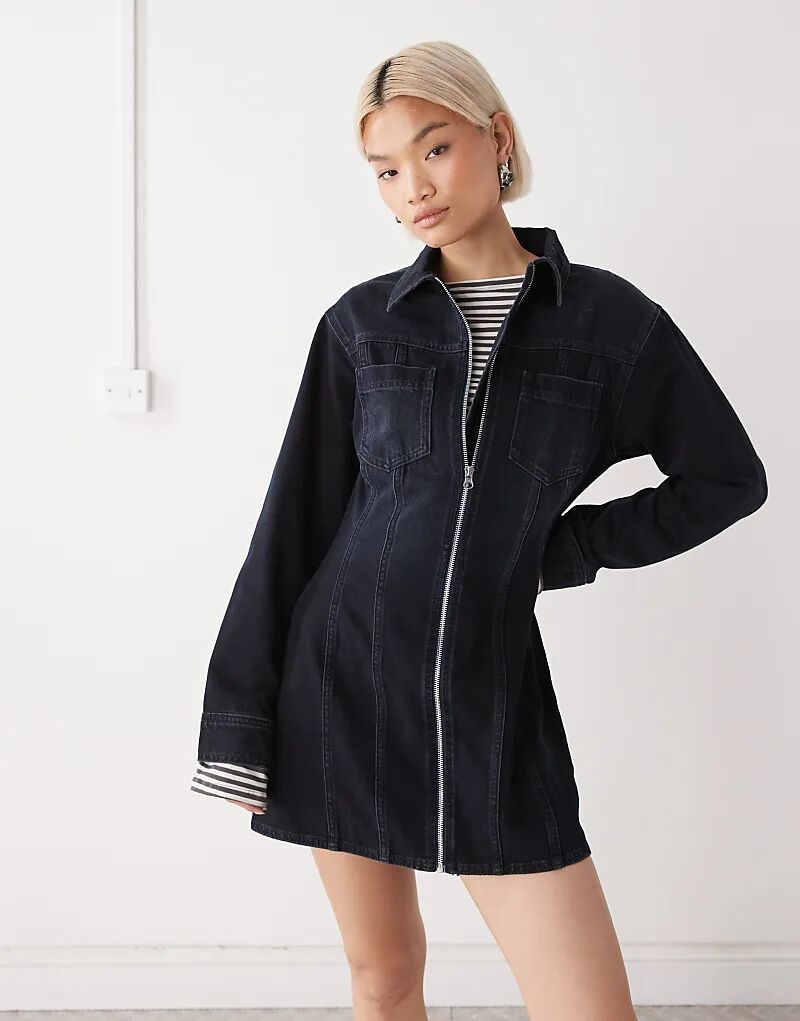 Платье-рубашка из денима с длинными рукавами COLLUSION темно-синего цвета 5 036₽