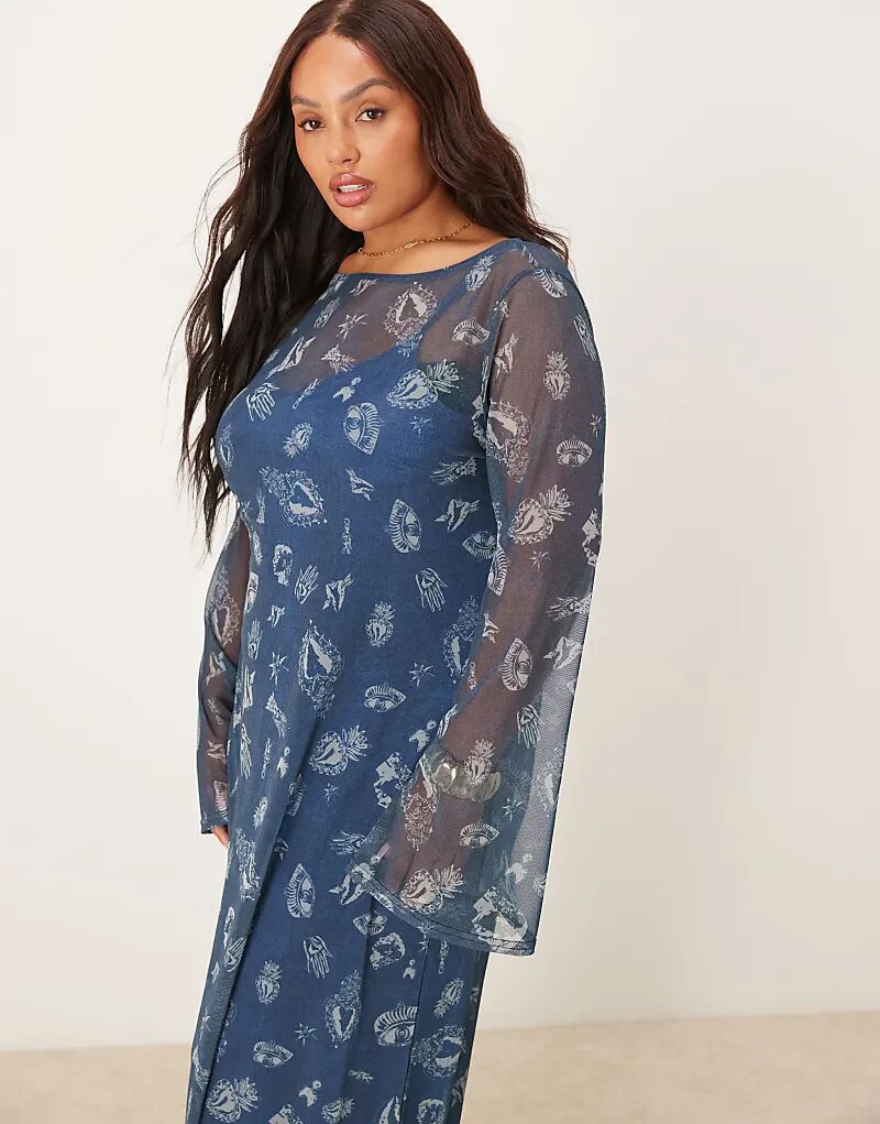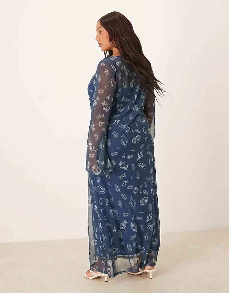 Платье макси Never Fully Dressed Plus с длинными рукавами и принтом в виде джинсовой ткани