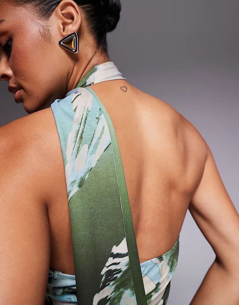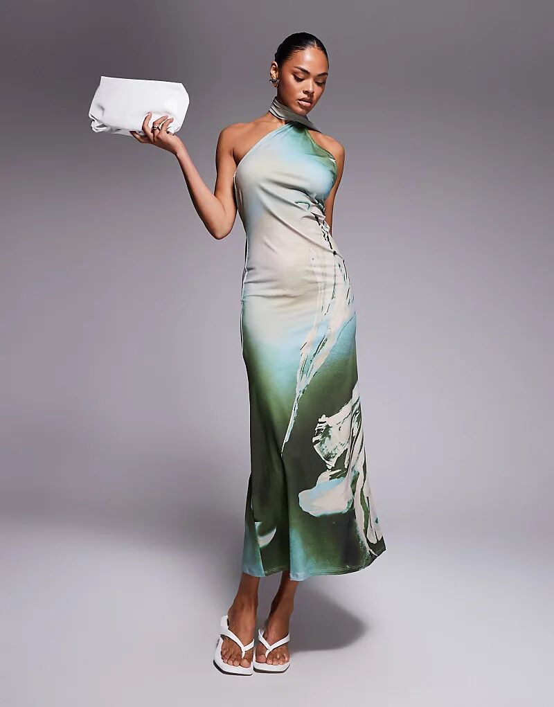 Платье миди ASOS DESIGN с шарфом и синим цветочным принтом