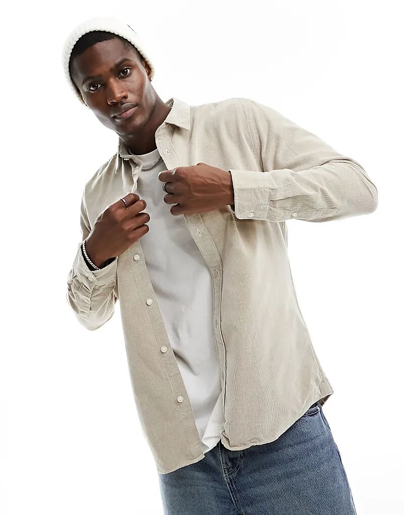 Selected вельветовая рубашка бежевого цвета