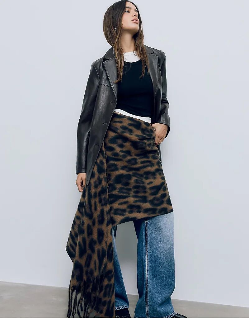 Шарф Stradivarius с леопардовым принтом коричневого цвета