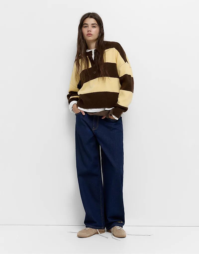 Полосатый вязаный свитер Pull&Bear коричневого цвета
