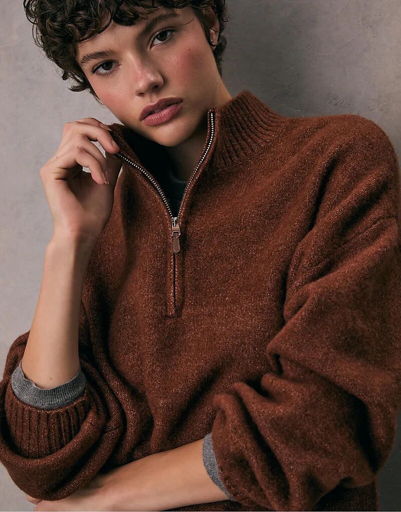 Джемпер Stradivarius Knit с молнией коричневого цвета