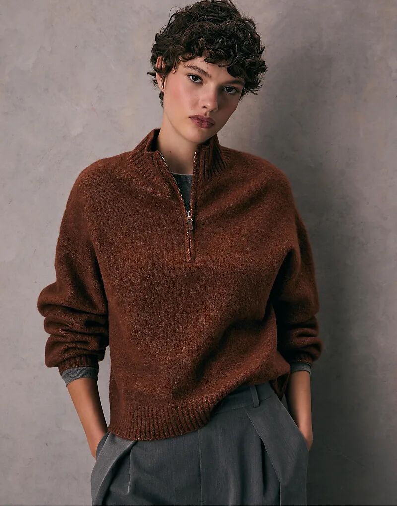 Джемпер Stradivarius Knit с молнией коричневого цвета 4 621₽