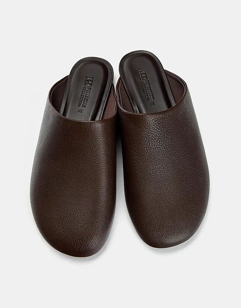 Туфли-мюли Pull&Bear Flat из кожи коричневого цвета