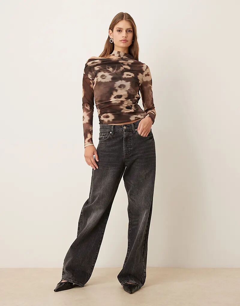 Топ Mango с разрезом по горловине и размытым цветочным принтом
