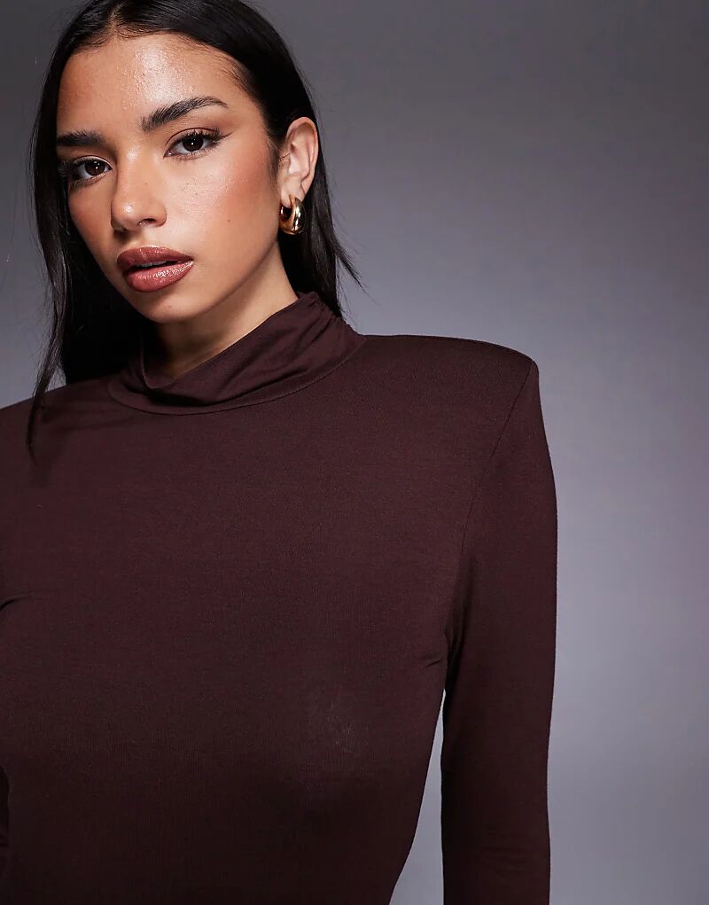 Коричневое мини-платье ASOS DESIGN с водолазкой и подплечниками 5 507₽
