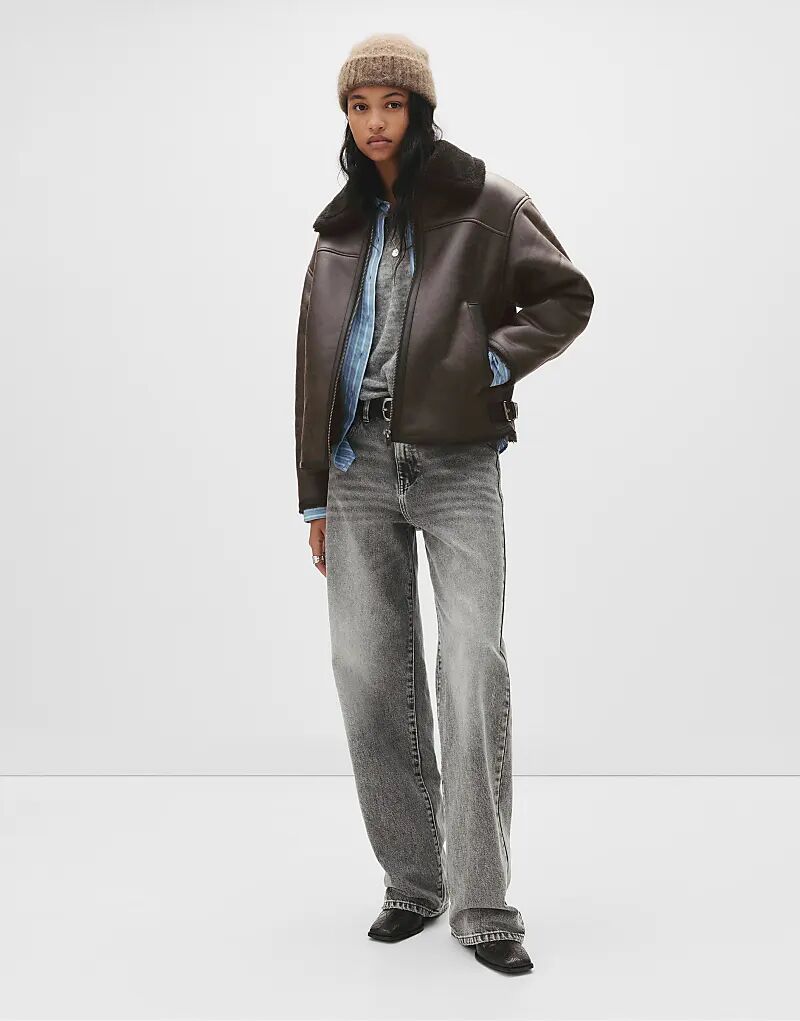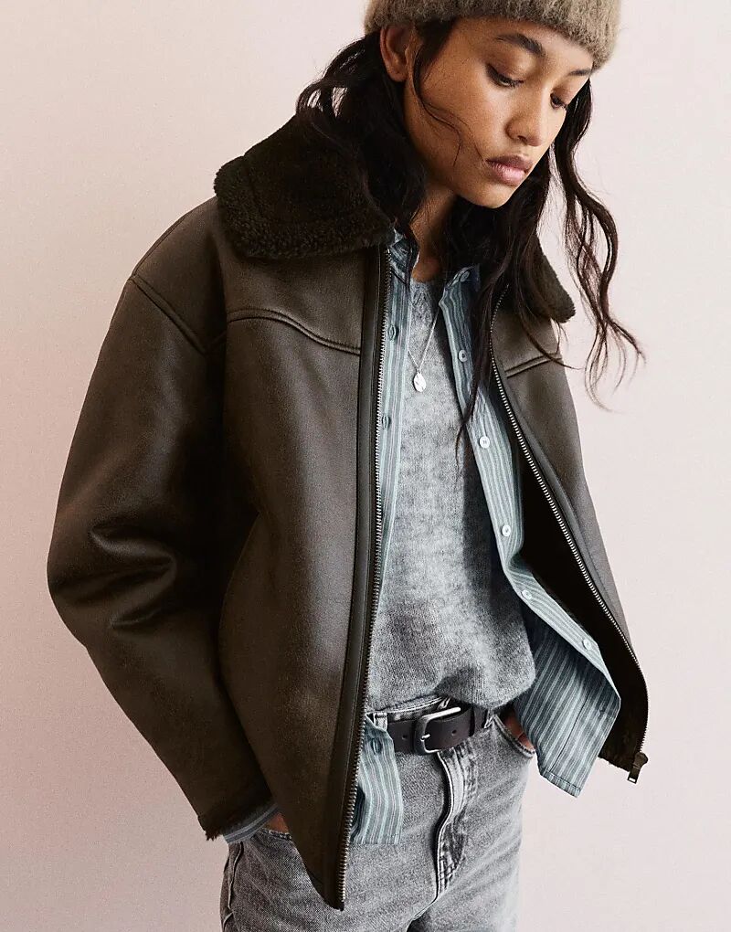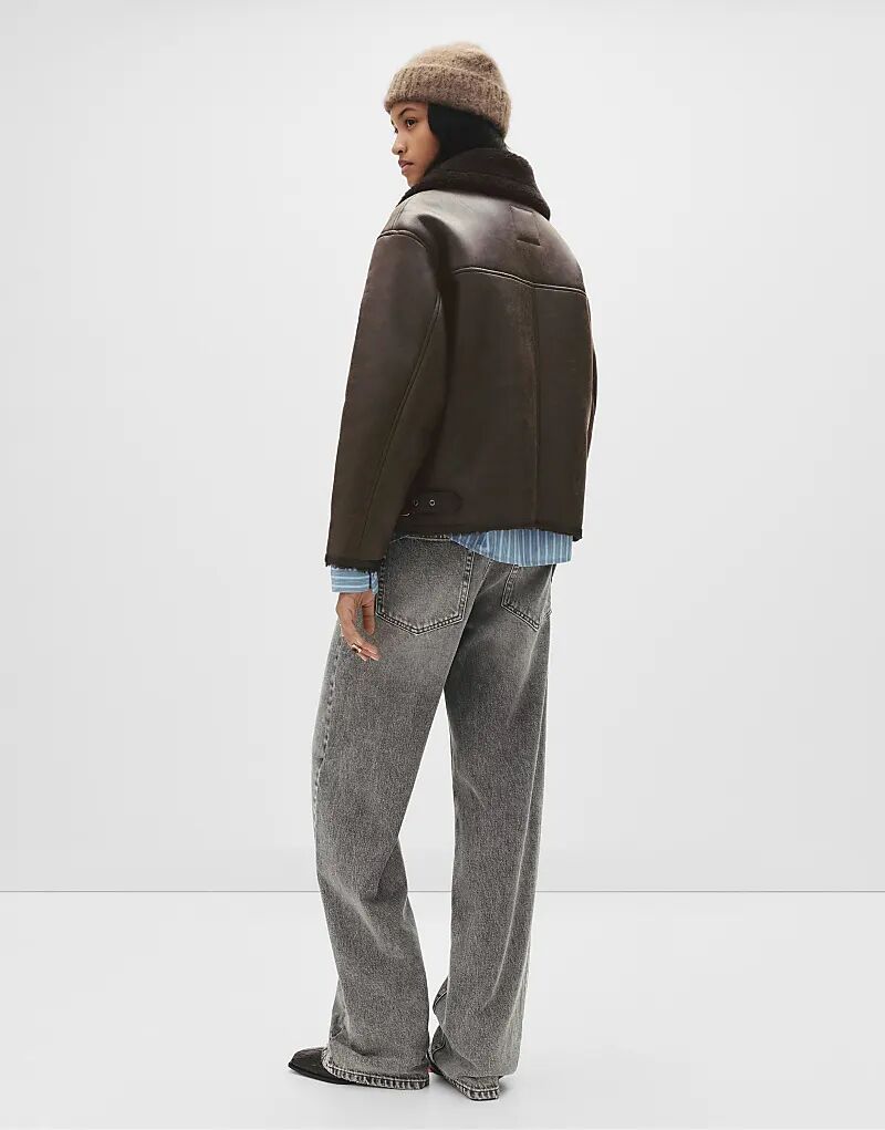 Куртка-авиатор Pull&Bear с воротником из овчины коричневого цвета 8 095₽