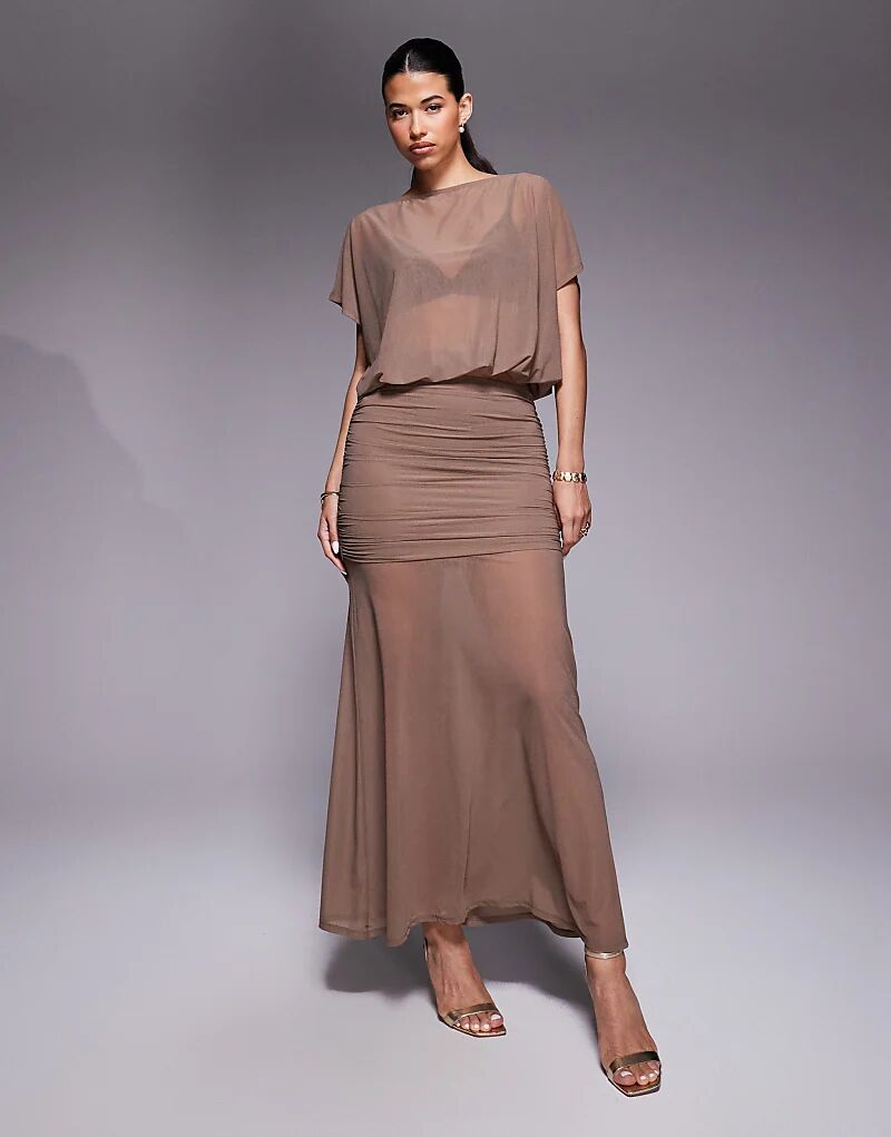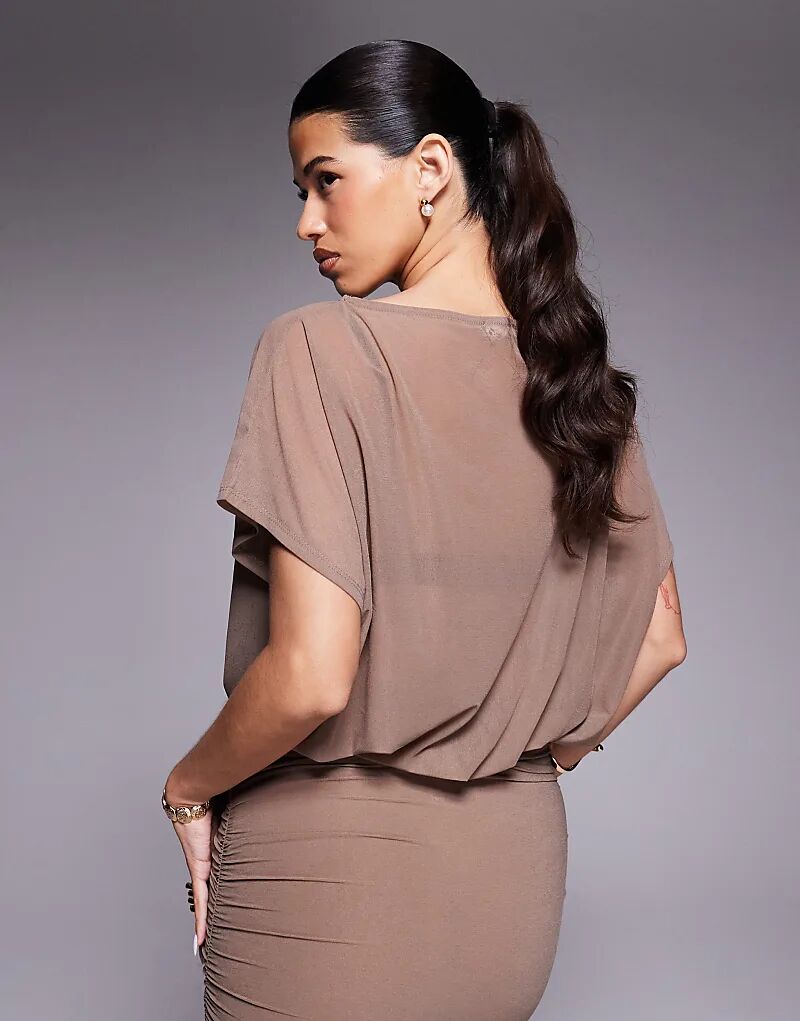 Сетчатый топ-лодочка свободного кроя от ASOS DESIGN коричневого цвета