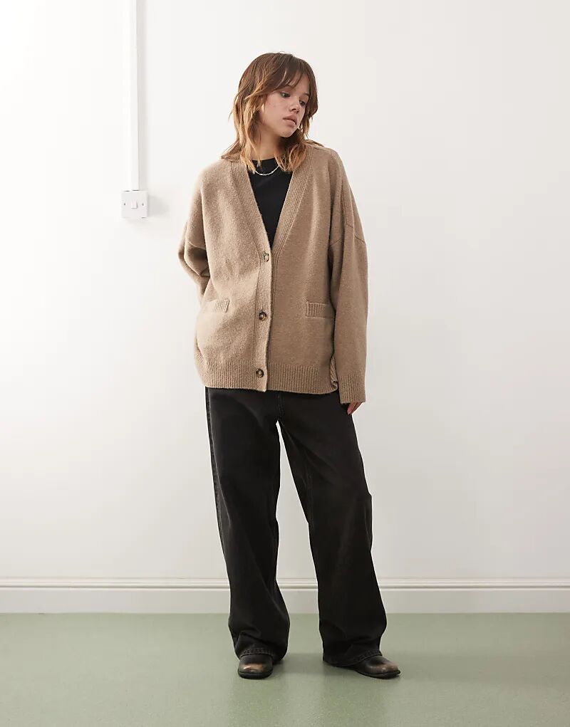 Вязаный кардиган Monki коричневого цвета 3 909₽