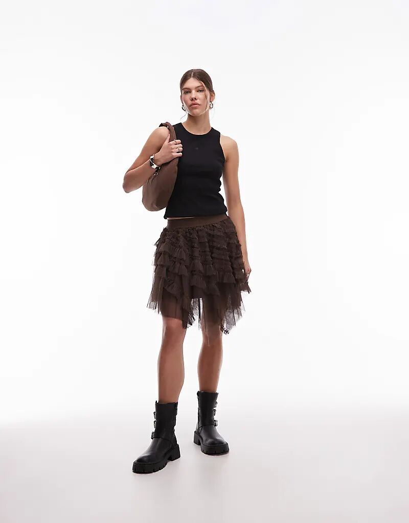 Мини-юбка AllSaints Jayde из тюля коричневого цвета