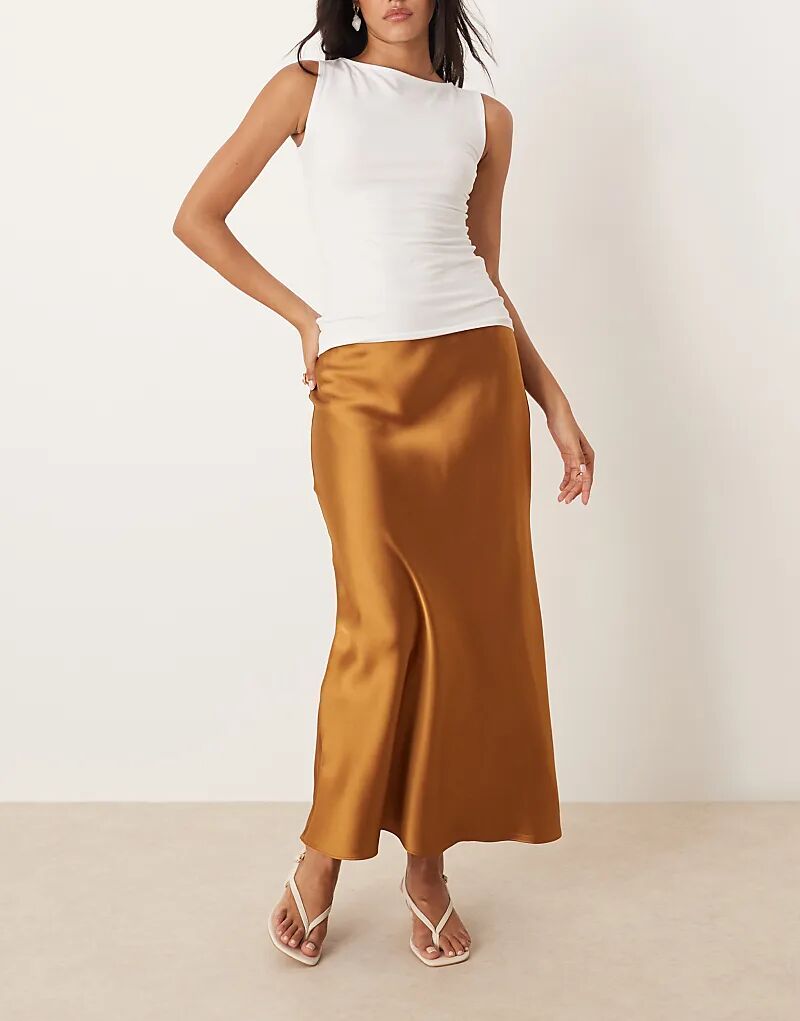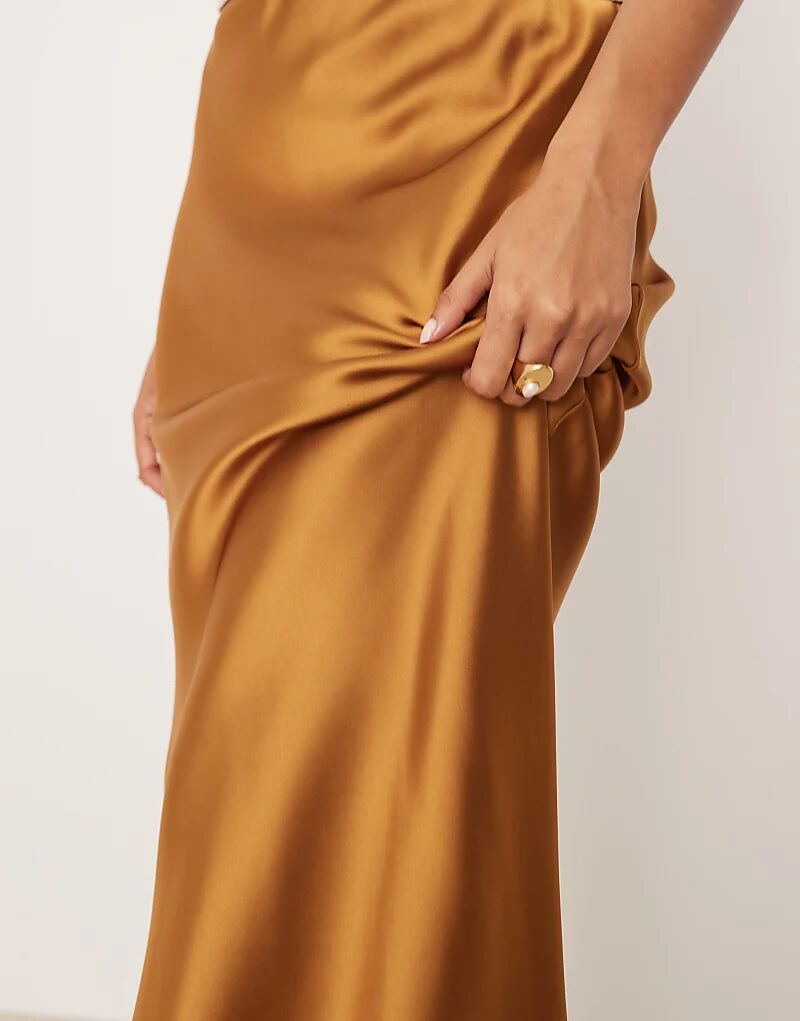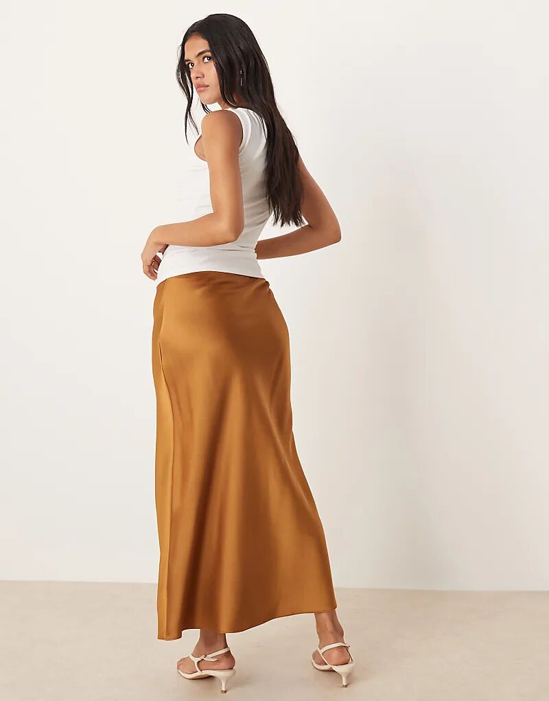 Юбка миди из атласа Mango коричневого цвета