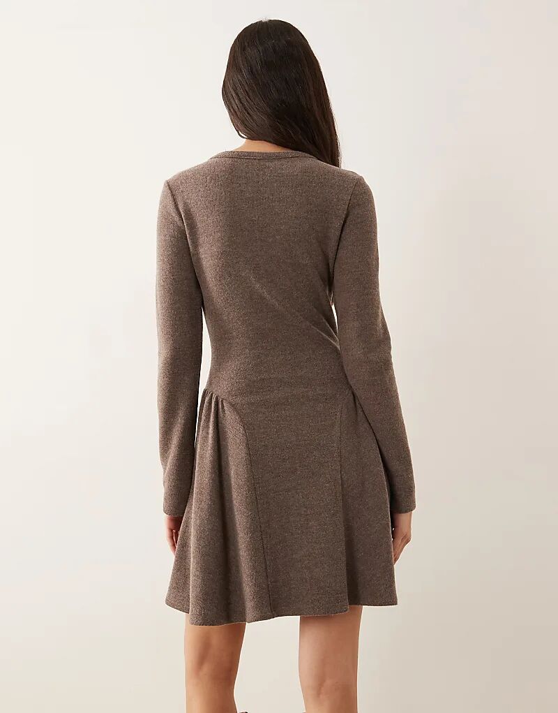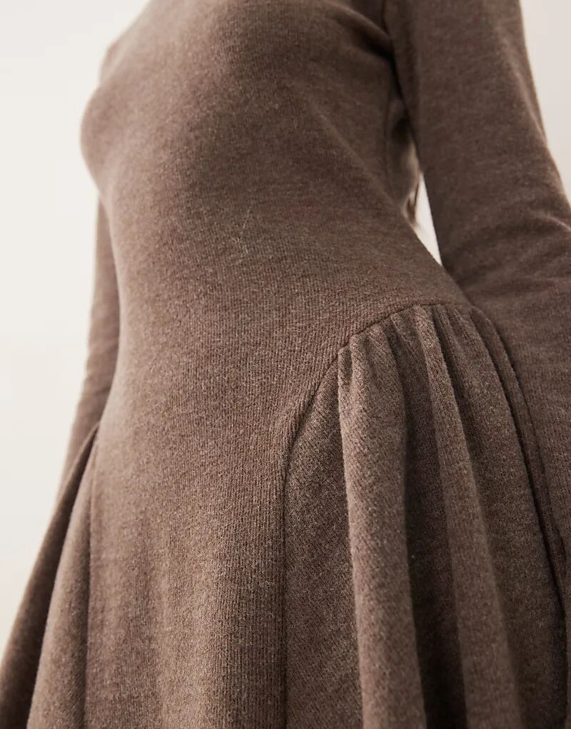 Супермягкое мини-платье годе с длинными рукавами шоколадного цвета от ASOS DESIGN