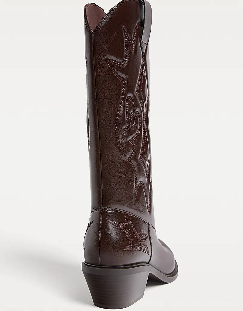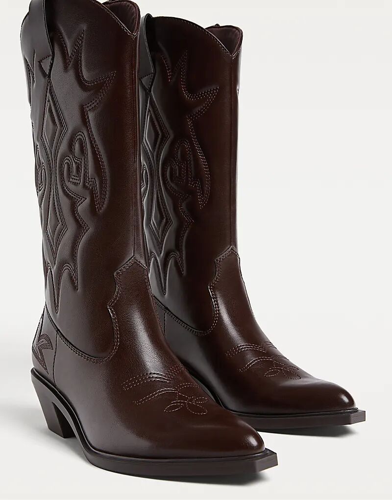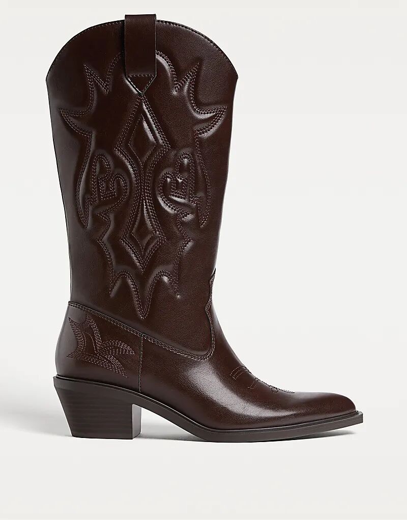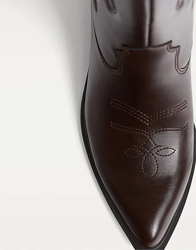 Коричневые ковбойские сапоги на каблуке Stradivarius