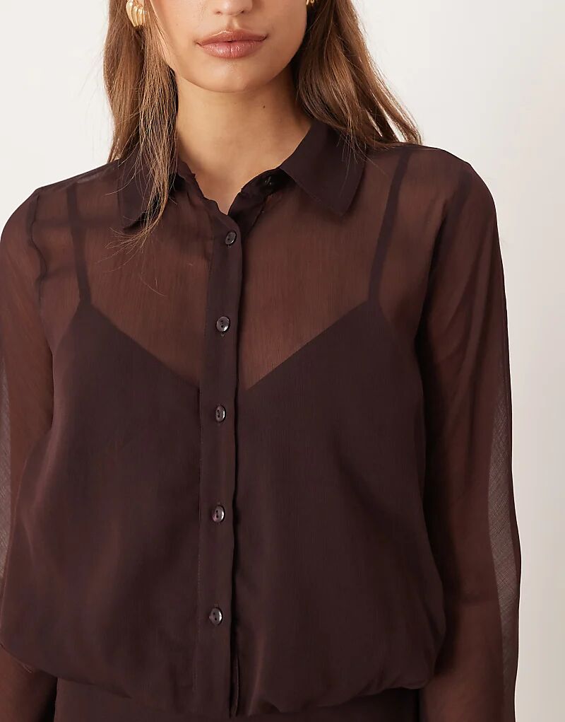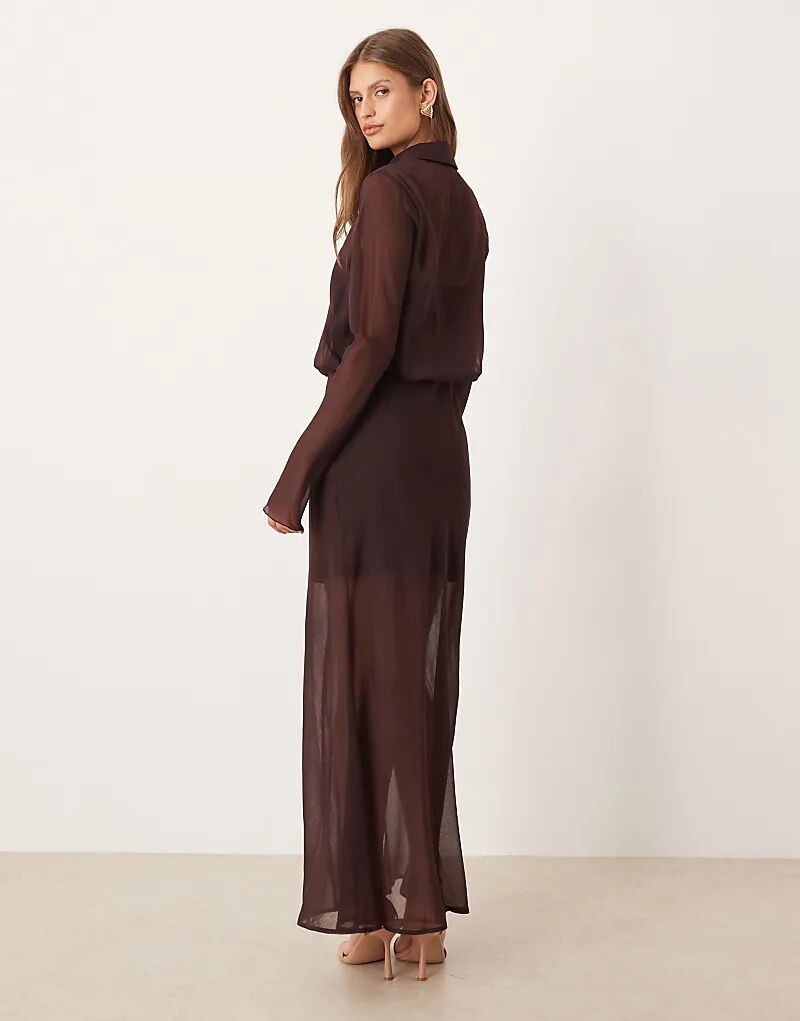 Прозрачное платье-рубашка миди ASOS DESIGN шоколадного цвета