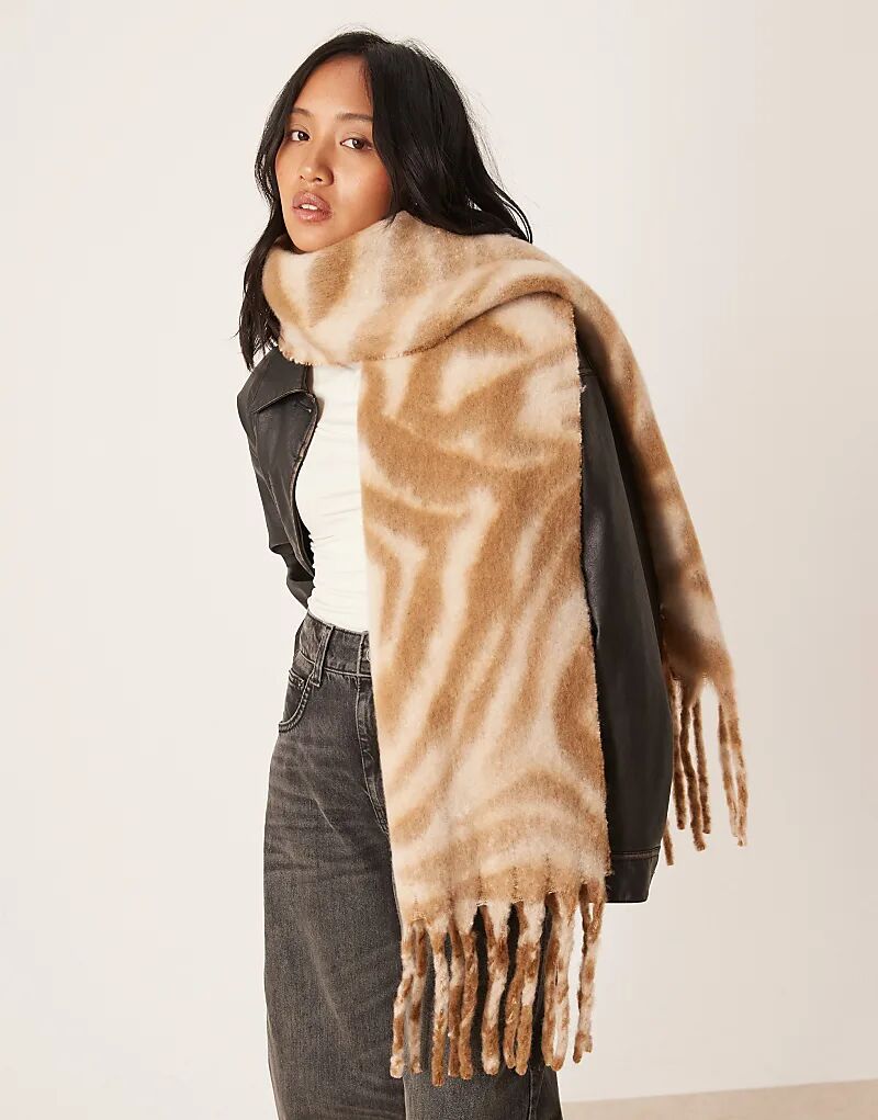 Супер пушистый шарф с тигровым принтом в разноцветном цвете
