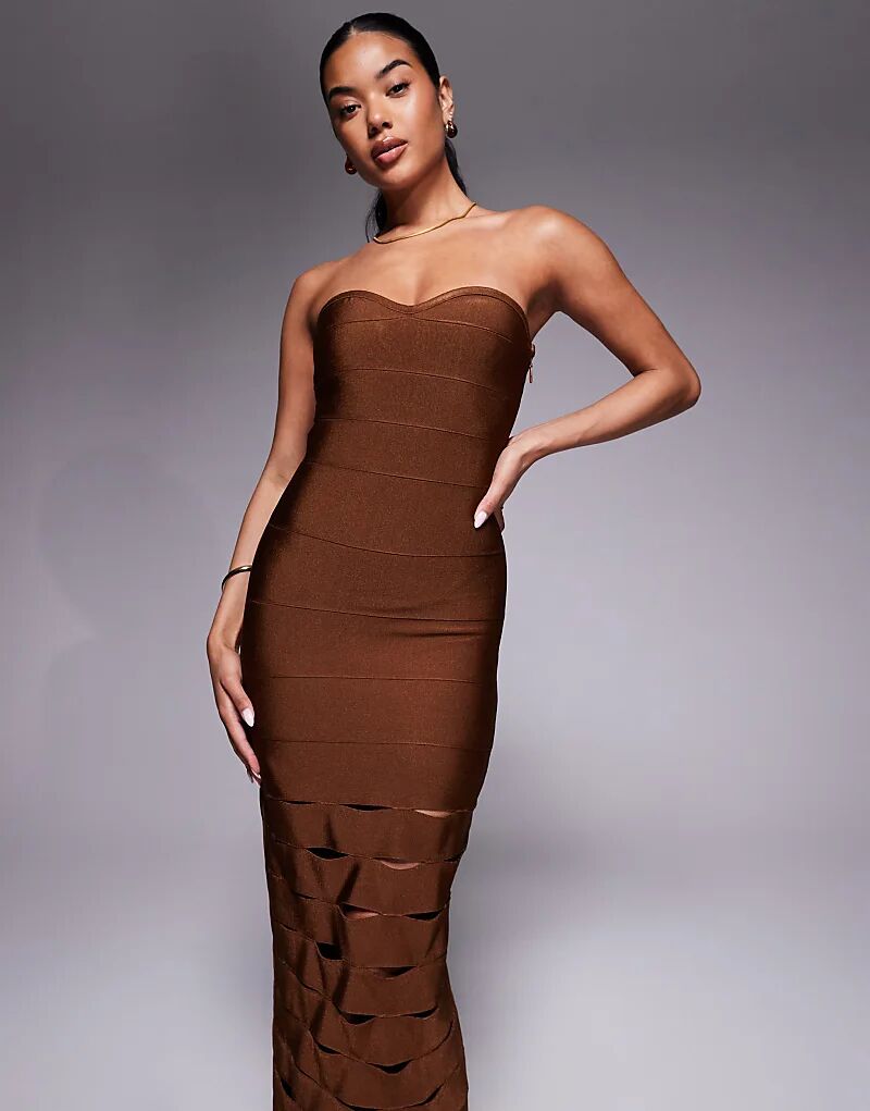 Платье-бандо миди ASOS DESIGN с вырезами шоколадного цвета