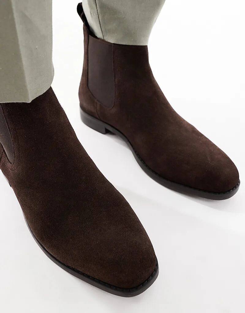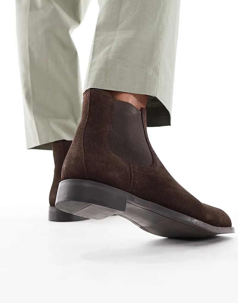 Ботинки челси ASOS DESIGN из коричневой замши 8 904₽