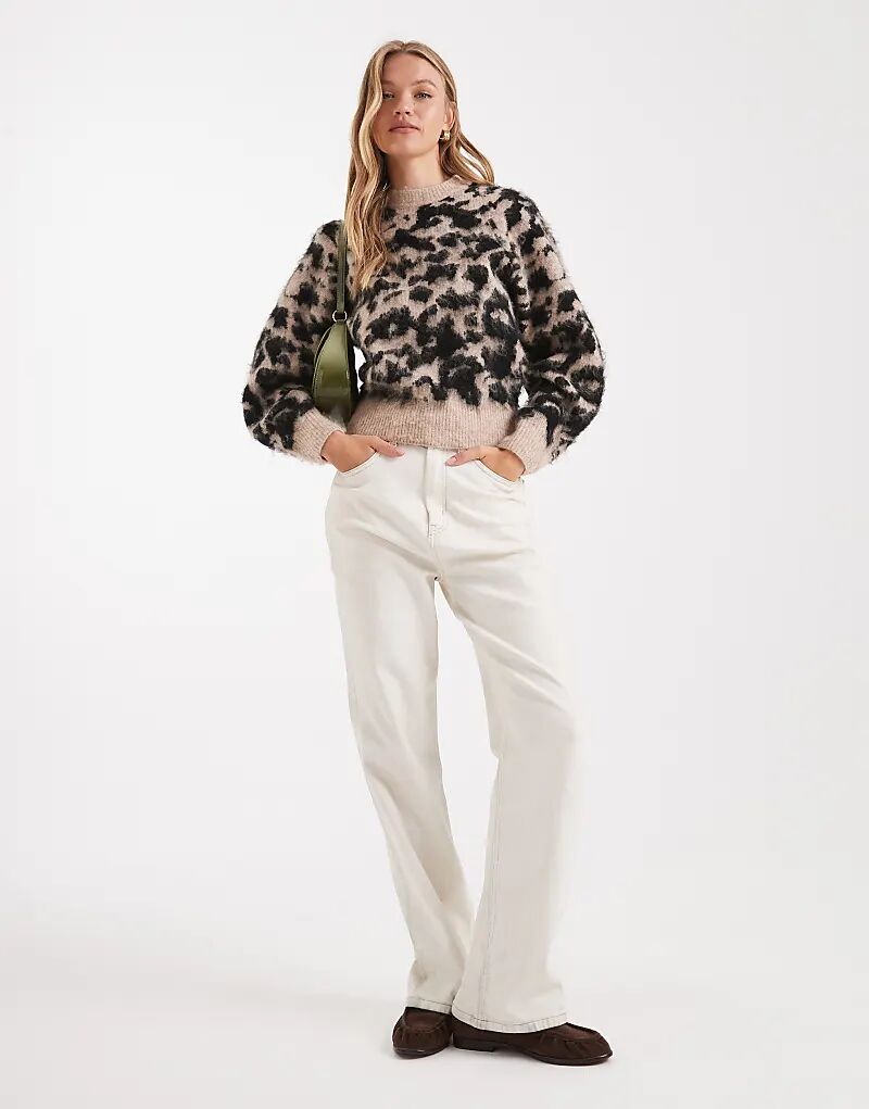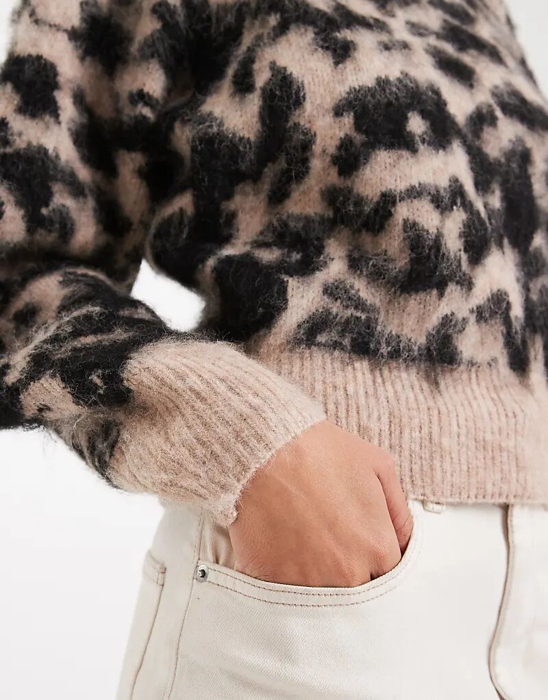 Коричневый джемпер с леопардовым принтом и рукавами реглан от ASOS DESIGN