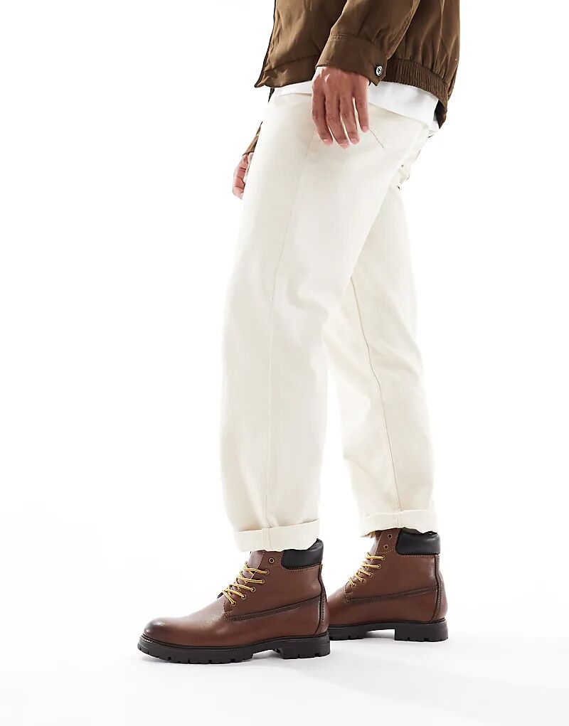 Рабочие ботинки ASOS DESIGN со шнуровкой из коричневой кожи