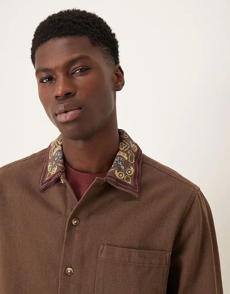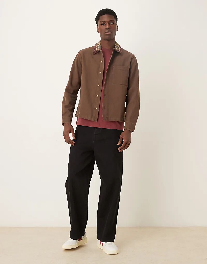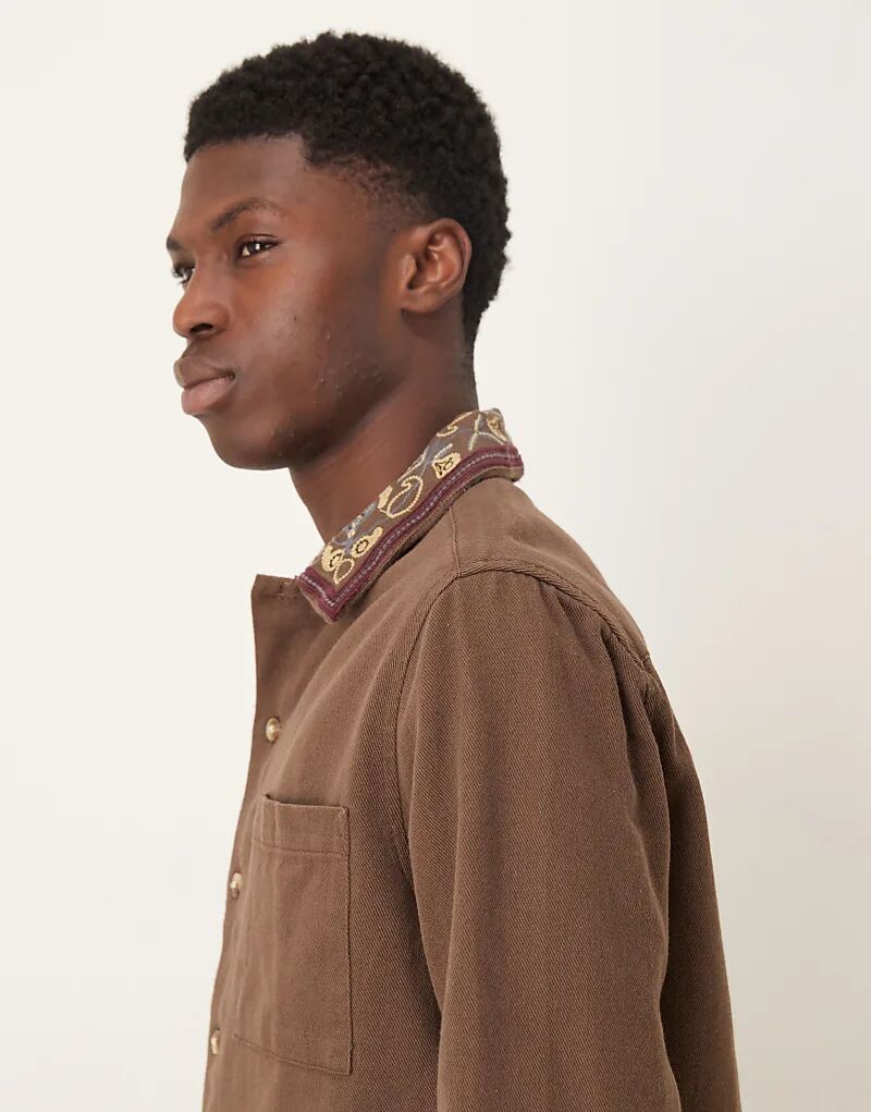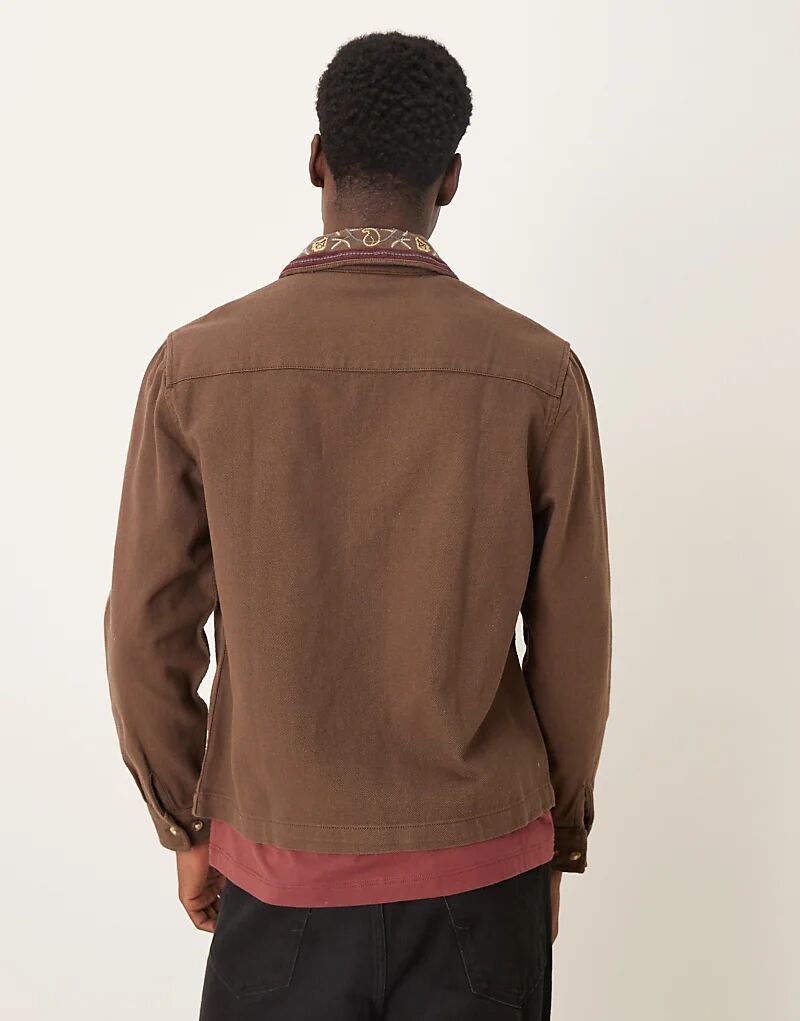 Коричневая рубашка ASOS DESIGN с вышивкой на воротнике