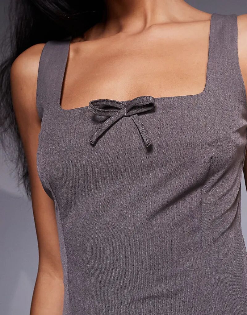 Коричневое мини-платье Brave Soul с квадратным вырезом и бантом