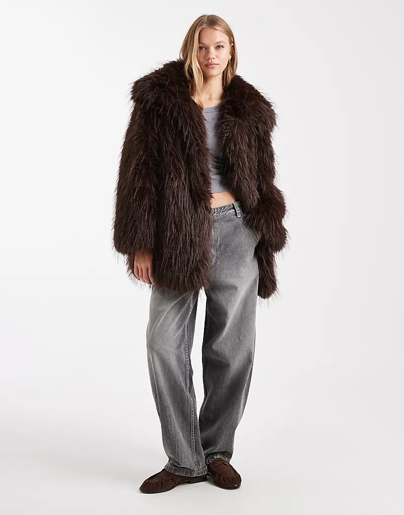 Искусственная шуба ASOS DESIGN шоколадного цвета