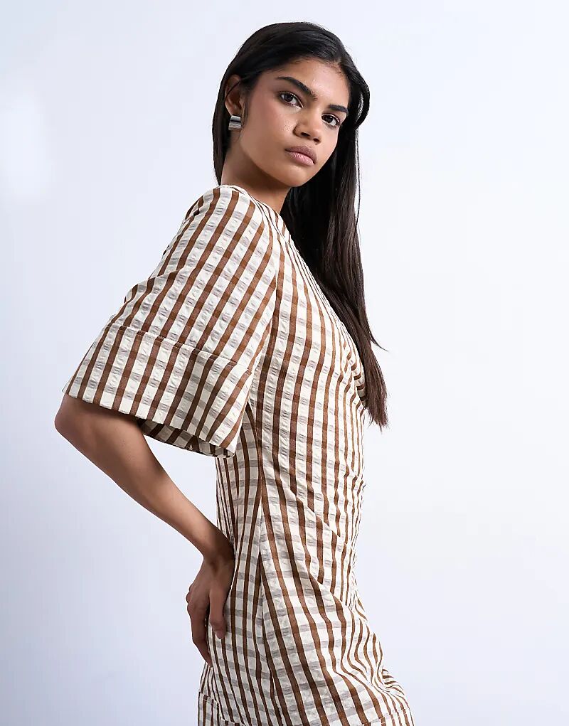 Мини-платье Topshop из сирсакера в коричневую клетку