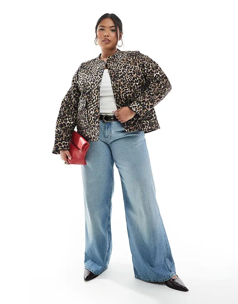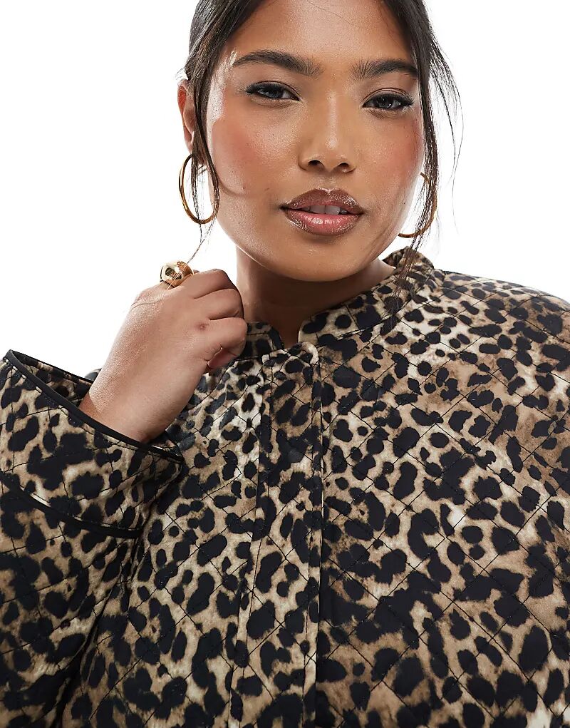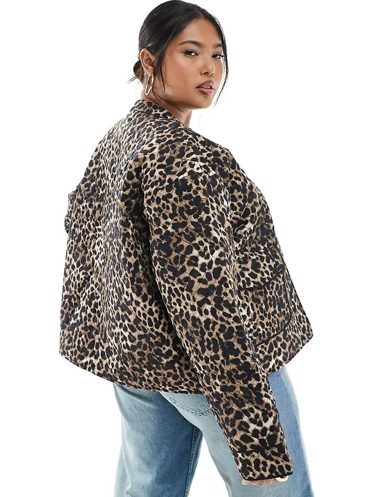 Стеганая куртка ONLY Curve с анималистичным принтом