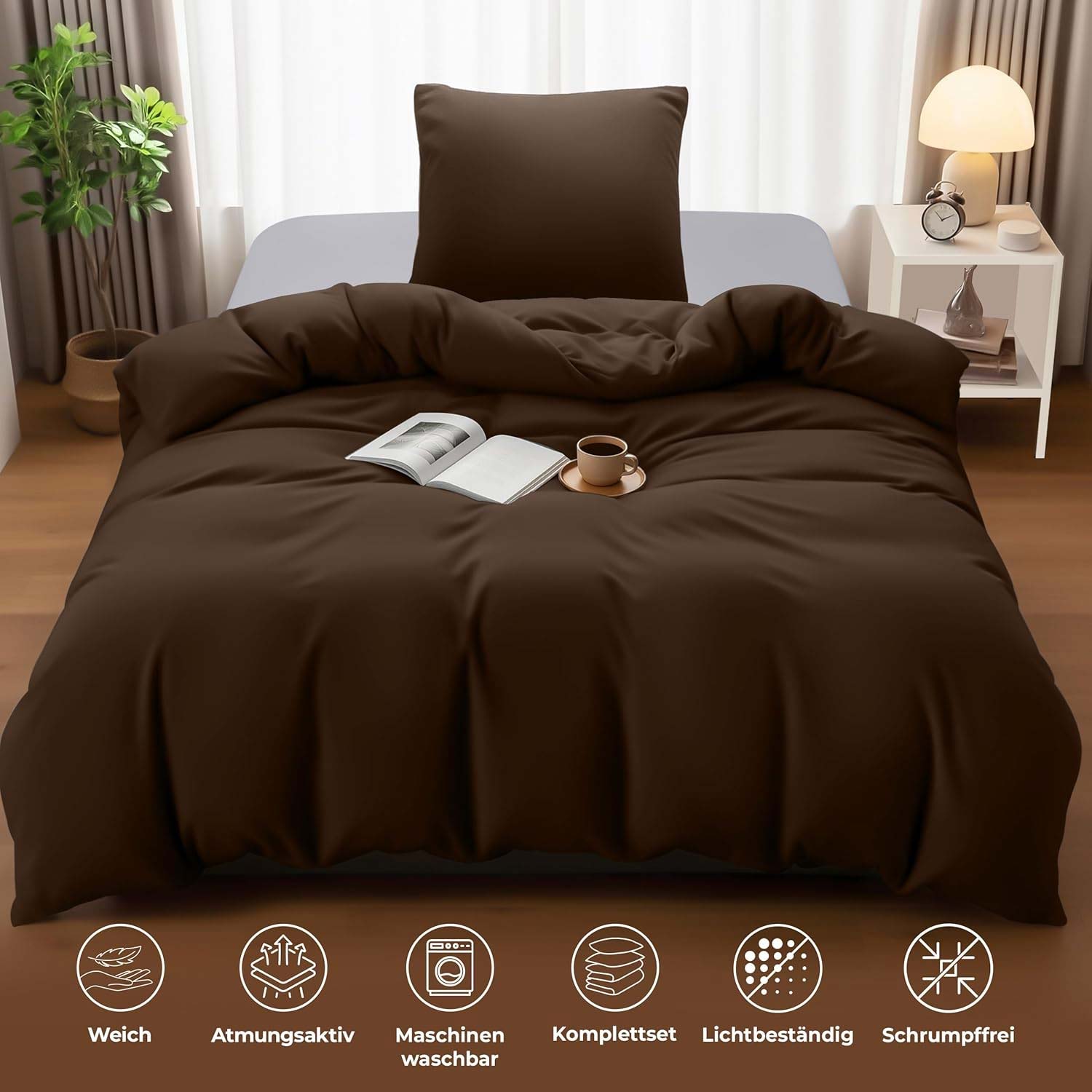 Постельное белье Utopia Bedning 135 x 200 см, пододеяльник из микрофибры 135 x 200 см + 1 наволочка 80 x 80 см, коричневый
