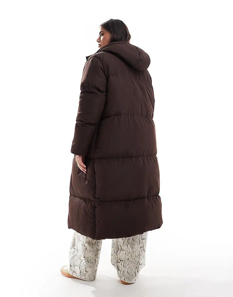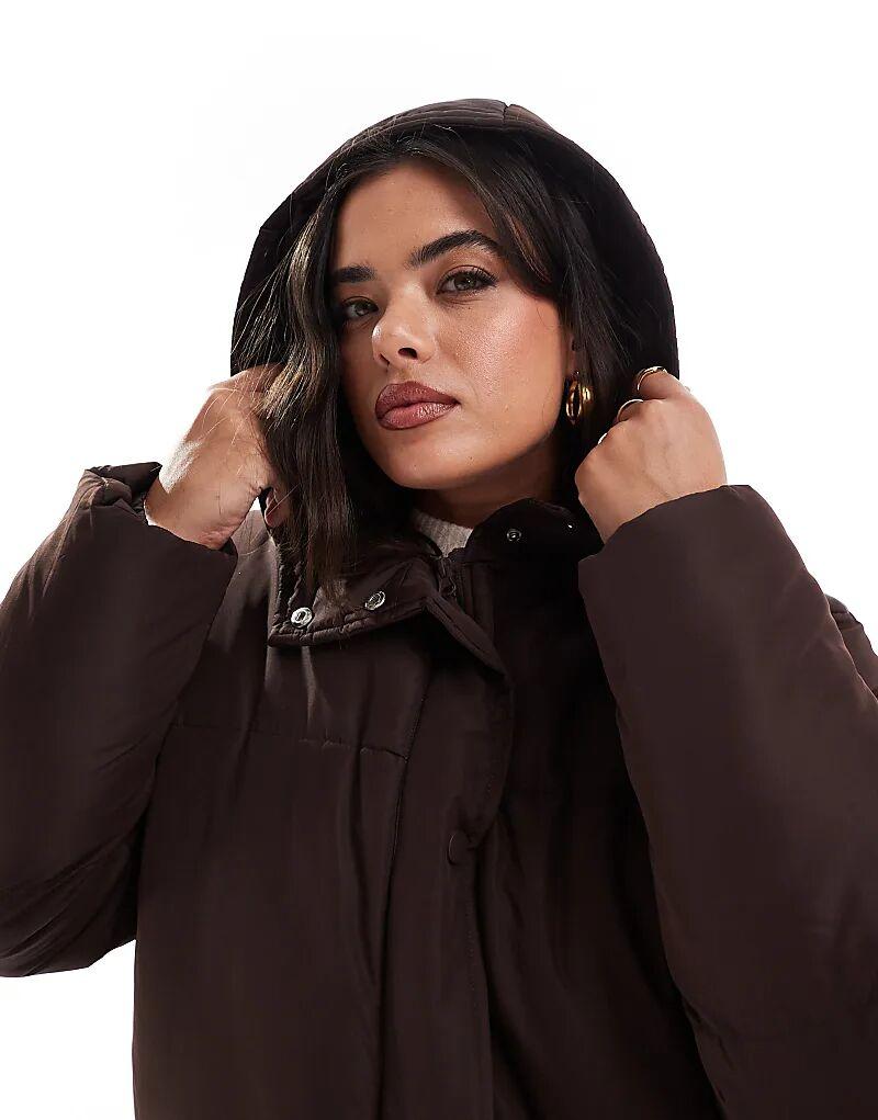 Длинное пальто Threadbare Plus с капюшоном коричневого цвета