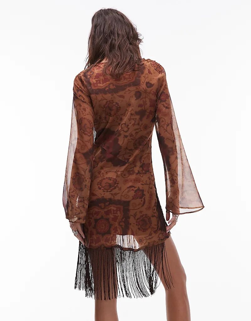 Мини-платье ASOS DESIGN с кисточками и коричневым цветочным принтом
