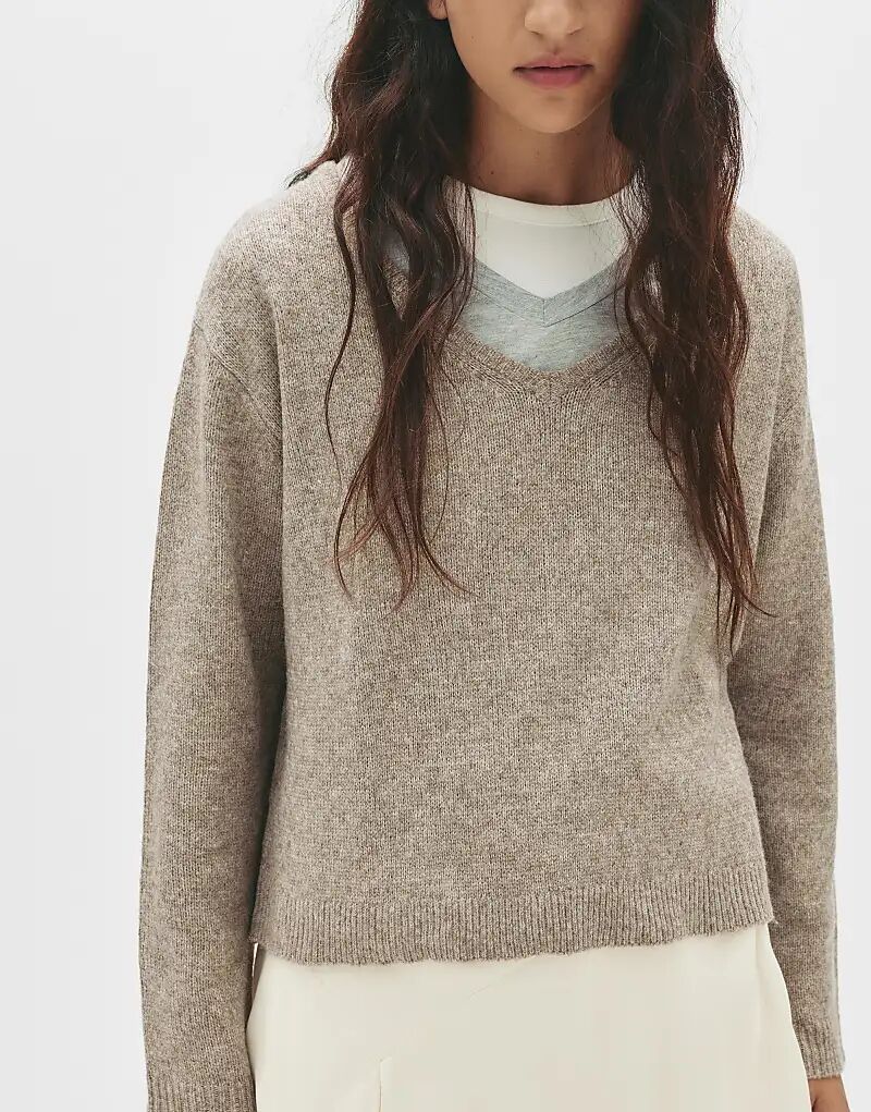 Pull&Bear Oversize-свитер тонкой вязки коричневого меланжевого цвета