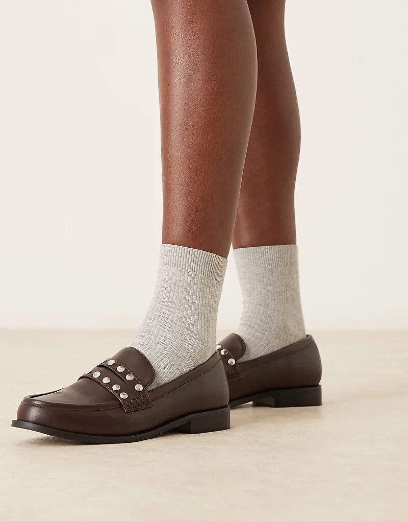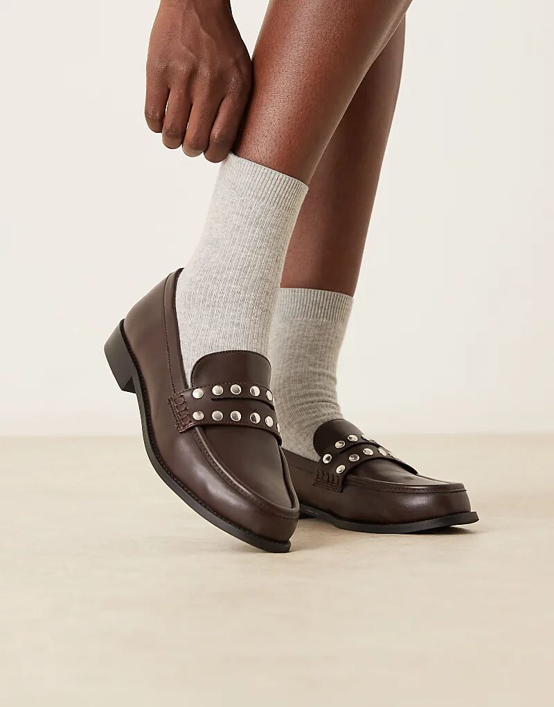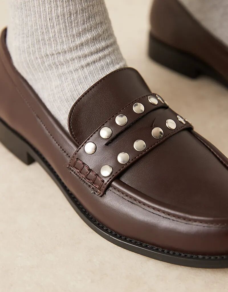 Коричневые мокасины RAID Wide Fit Ferney с заклепками