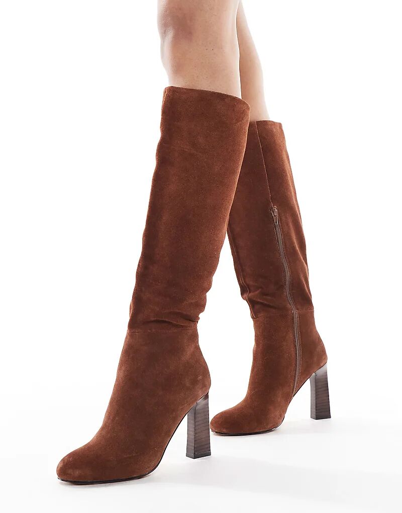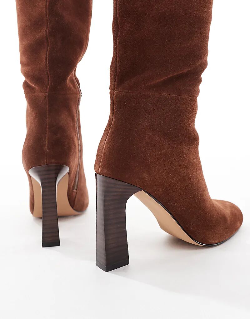 Ботинки Schuh Draya на платформе до колена из замши коричневого цвета
