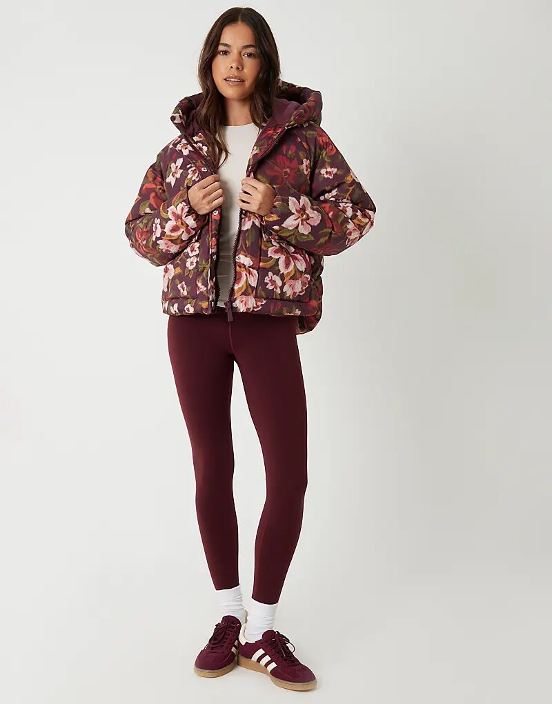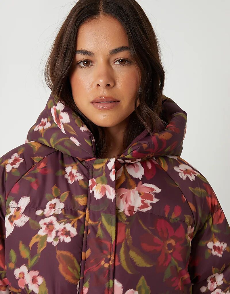 Утепленная куртка Threadbare с цветочным принтом и капюшоном бордового цвета