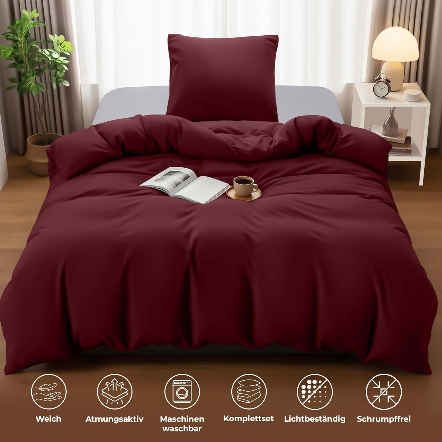 Постельное белье Utopia Bedning 135 x 200 см, пододеяльник из микрофибры 135 x 200 см + 1 наволочка 80 x 80 см, бургундия