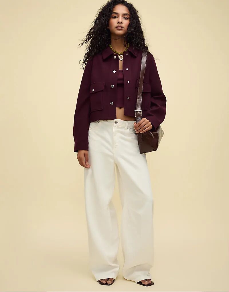 Короткая куртка Stradivarius Soft бордового цвета 5 641₽