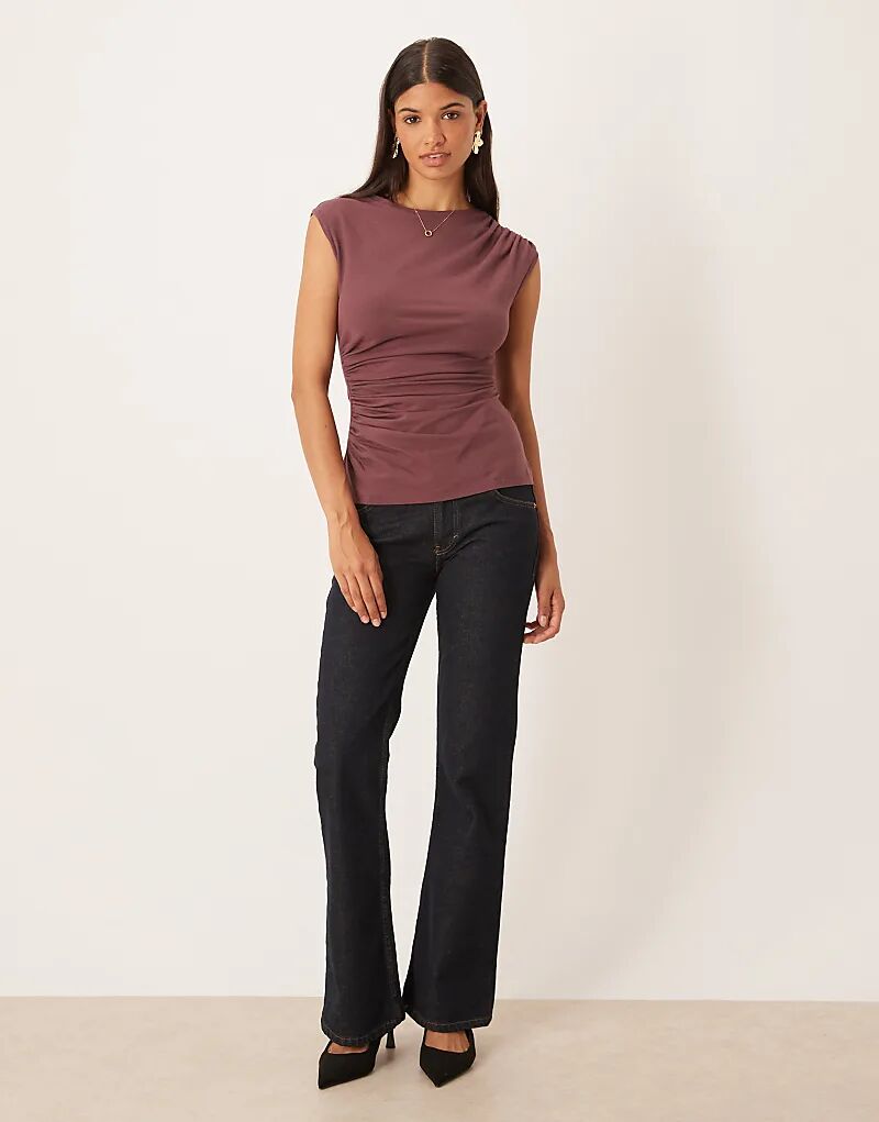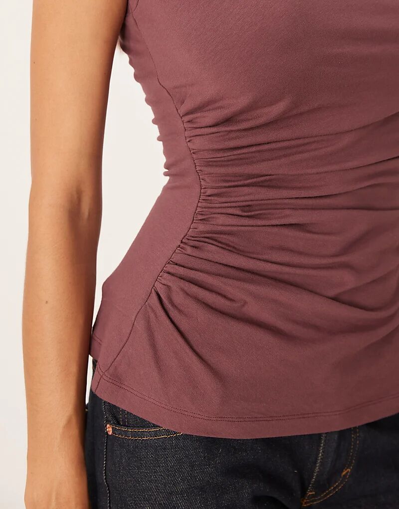 Хлопковый топ со сборками ASOS DESIGN бордового цвета