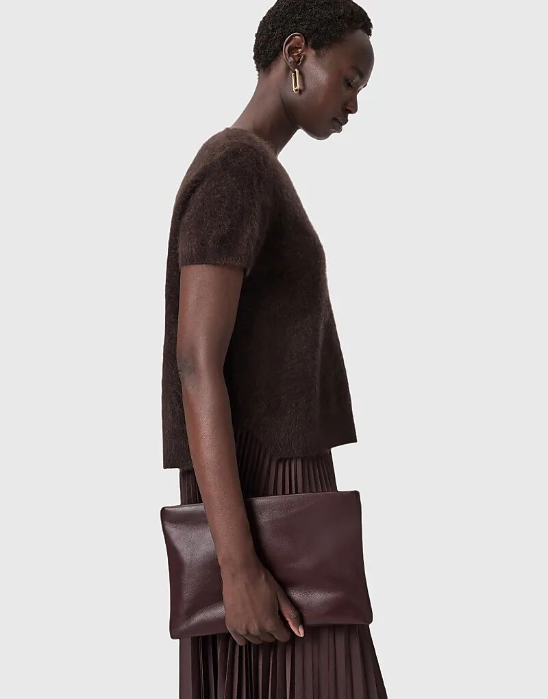 Бордовый кожаный клатч на молнии AllSaints Bettina