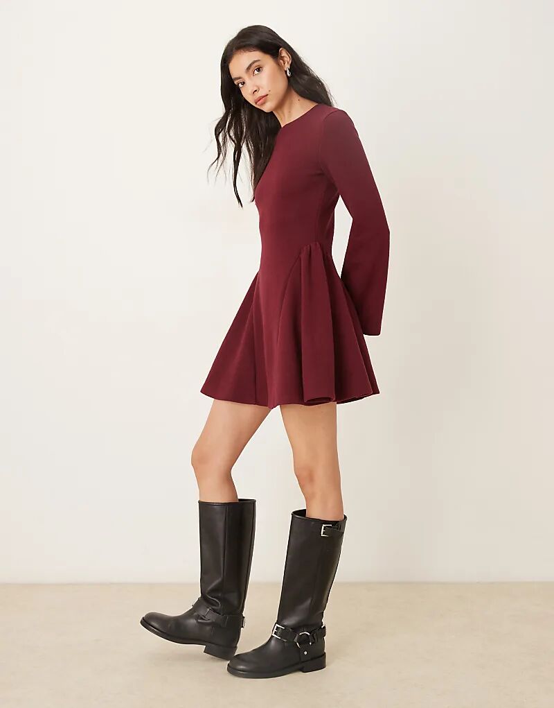 Супермягкое мини-платье годе с длинными рукавами ASOS DESIGN бордового цвета