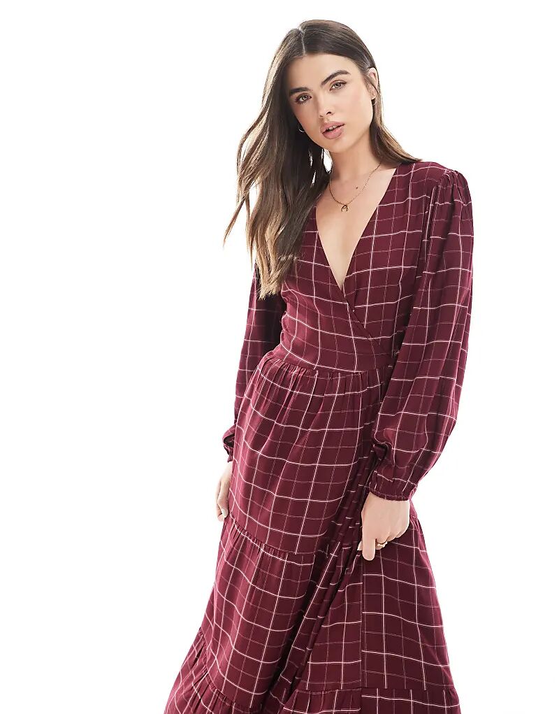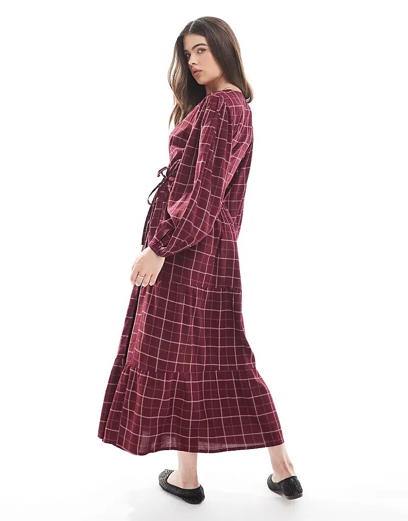 В среду девушка в клетчатой ​​рубашке Midaxi бордового цвета