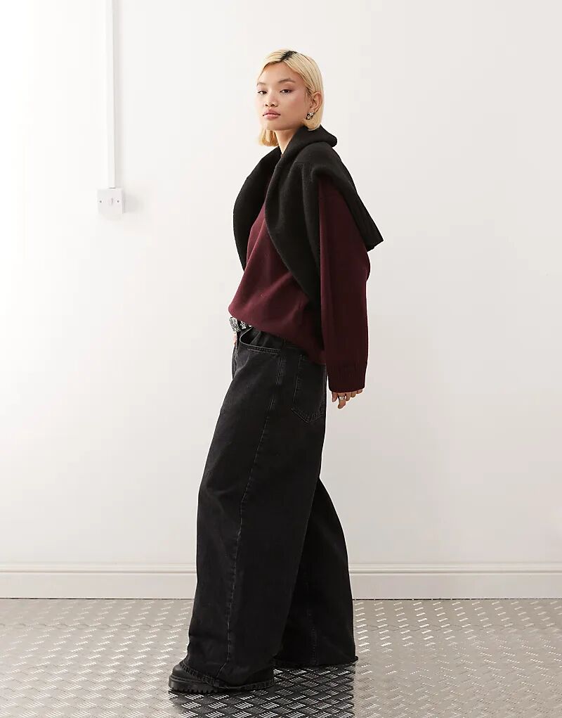Джемпер Monki oversize со спущенным плечом бордового цвета