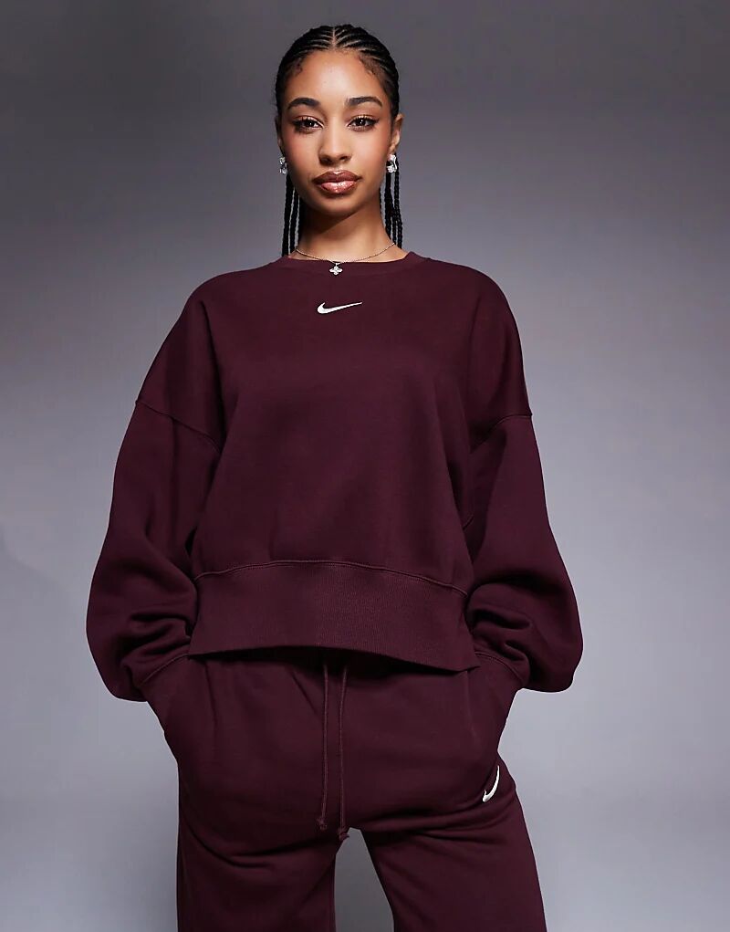 Толстовка Nike Phoenix Fleece oversize бордового цвета