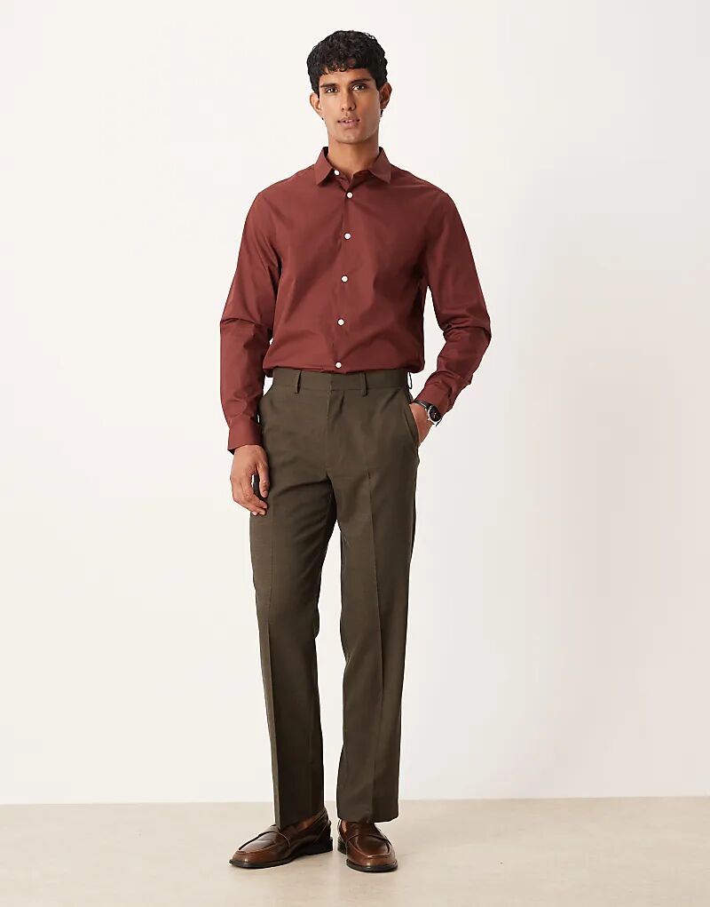 Рубашка ASOS DESIGN из поплина, бордового цвета